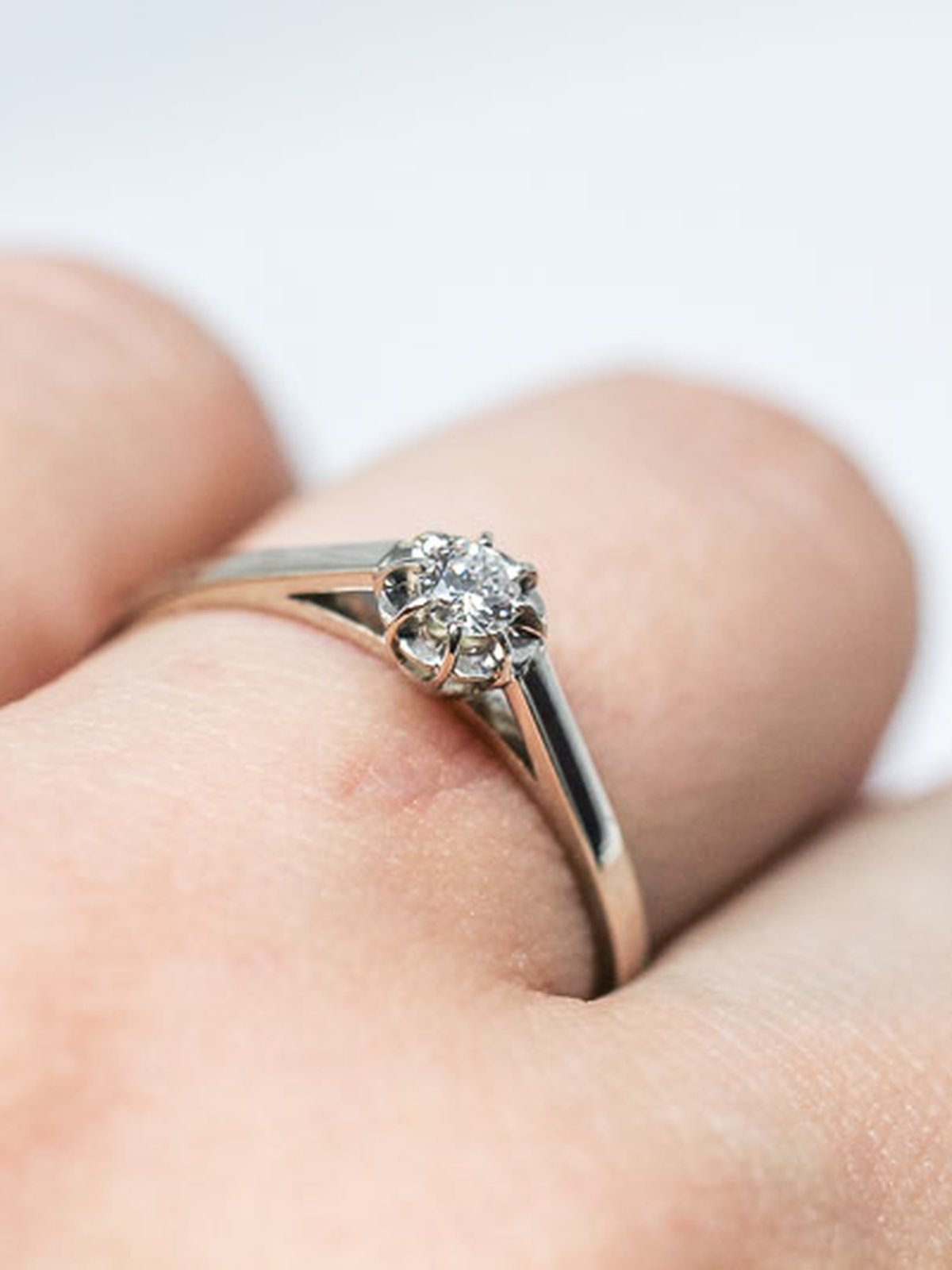 Solitärring i vitguld med en 0,12ct briljantslipad diamant.