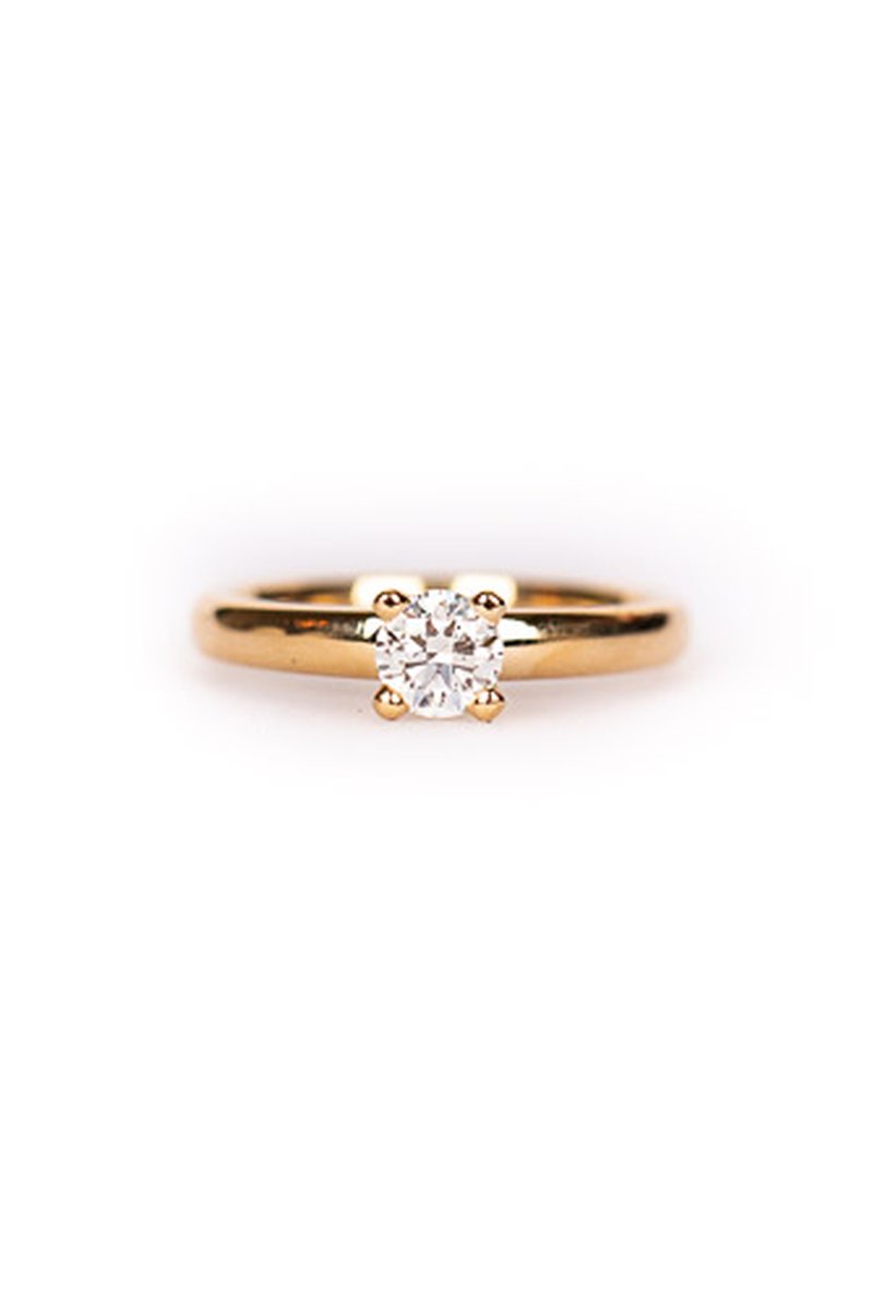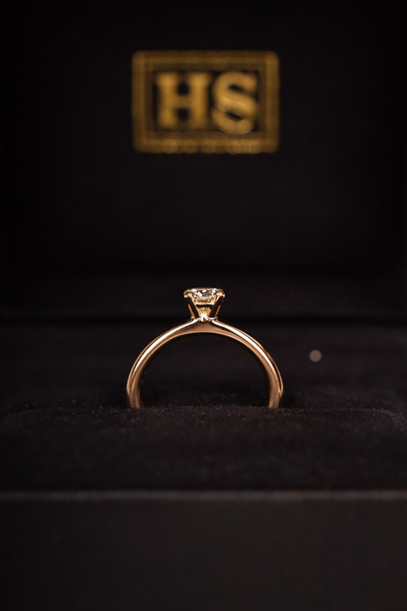 Klassisk solitärring i rödguld med 4 klor och 0,50ct diamant. Perfekt som förlovnings- eller vigselring som går att få graverad vid önskemål. Matchar perfekt ihop med den släta guldringen på bild nr 5 (artikelnummer sh7853 - 4000.-). Storleksändring både upp och ned är fullt möjligt om nuvarande storlek inte passar. 500.- för storleksändring upp till två storlekar, därefter lämnas kostnadsförslag. GIA-certifikat och originalask medföljer.