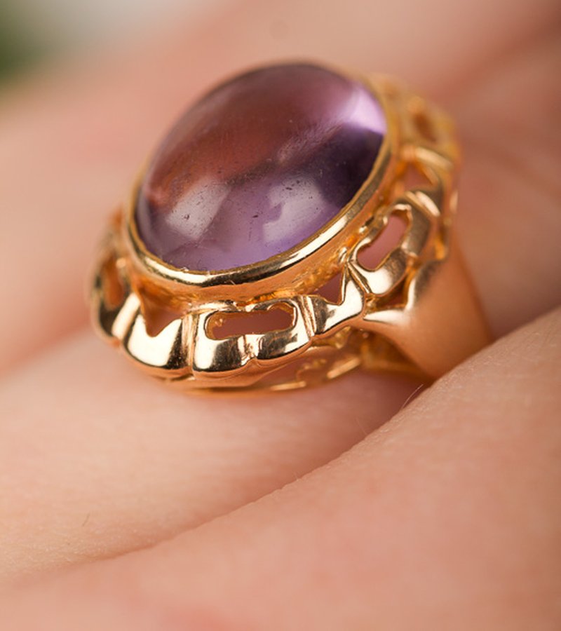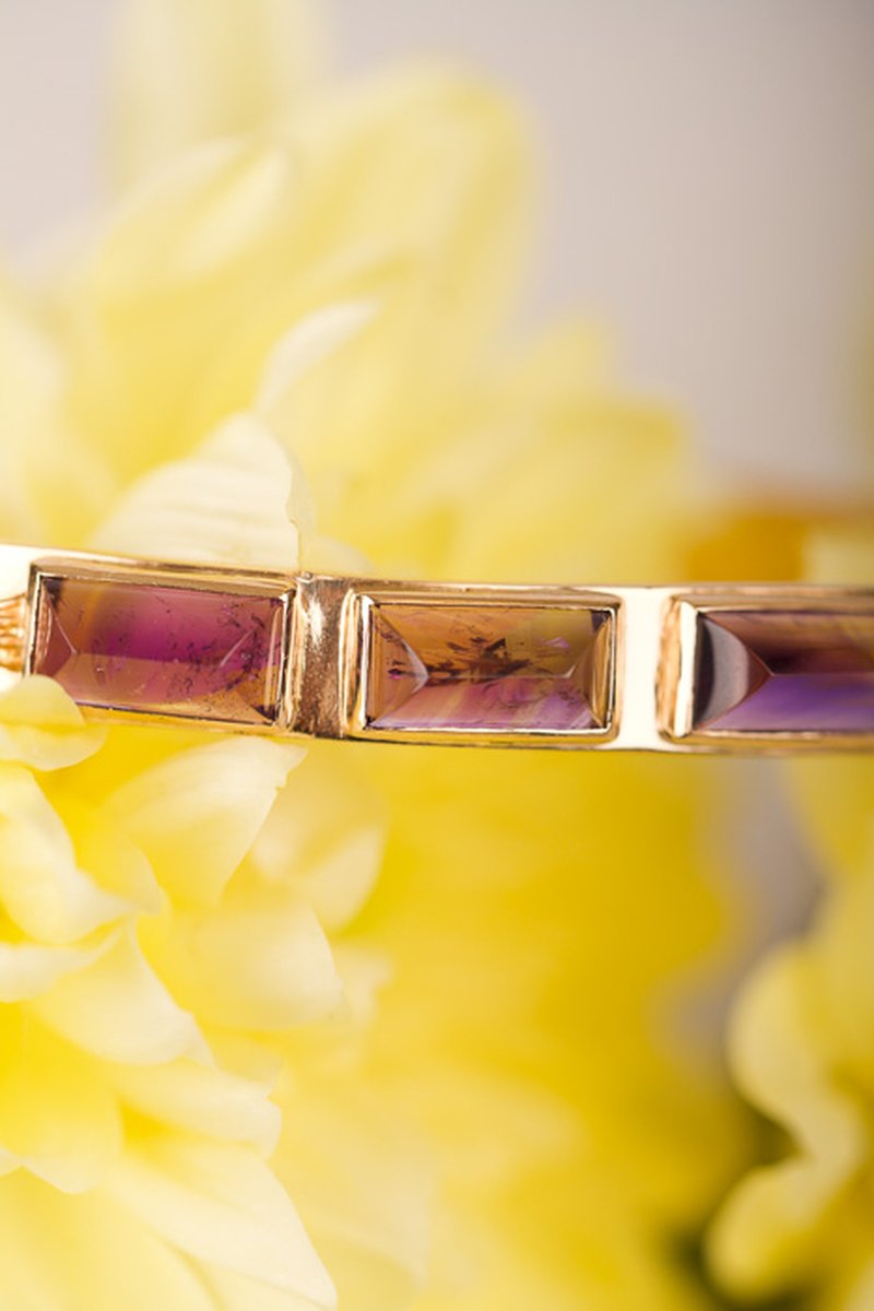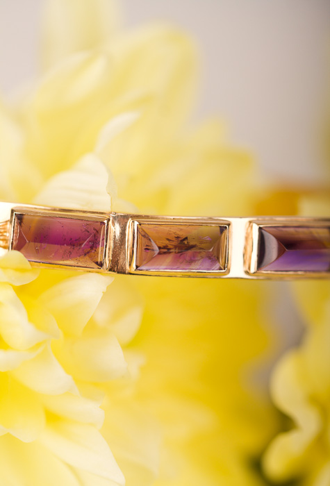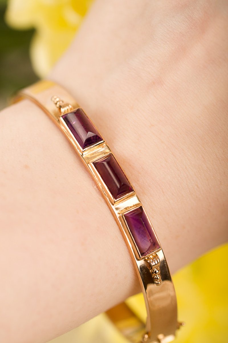 Vintage armring med tre stycken ametister. Tillverkad av Dahlgren & CO i Malmö 1953.