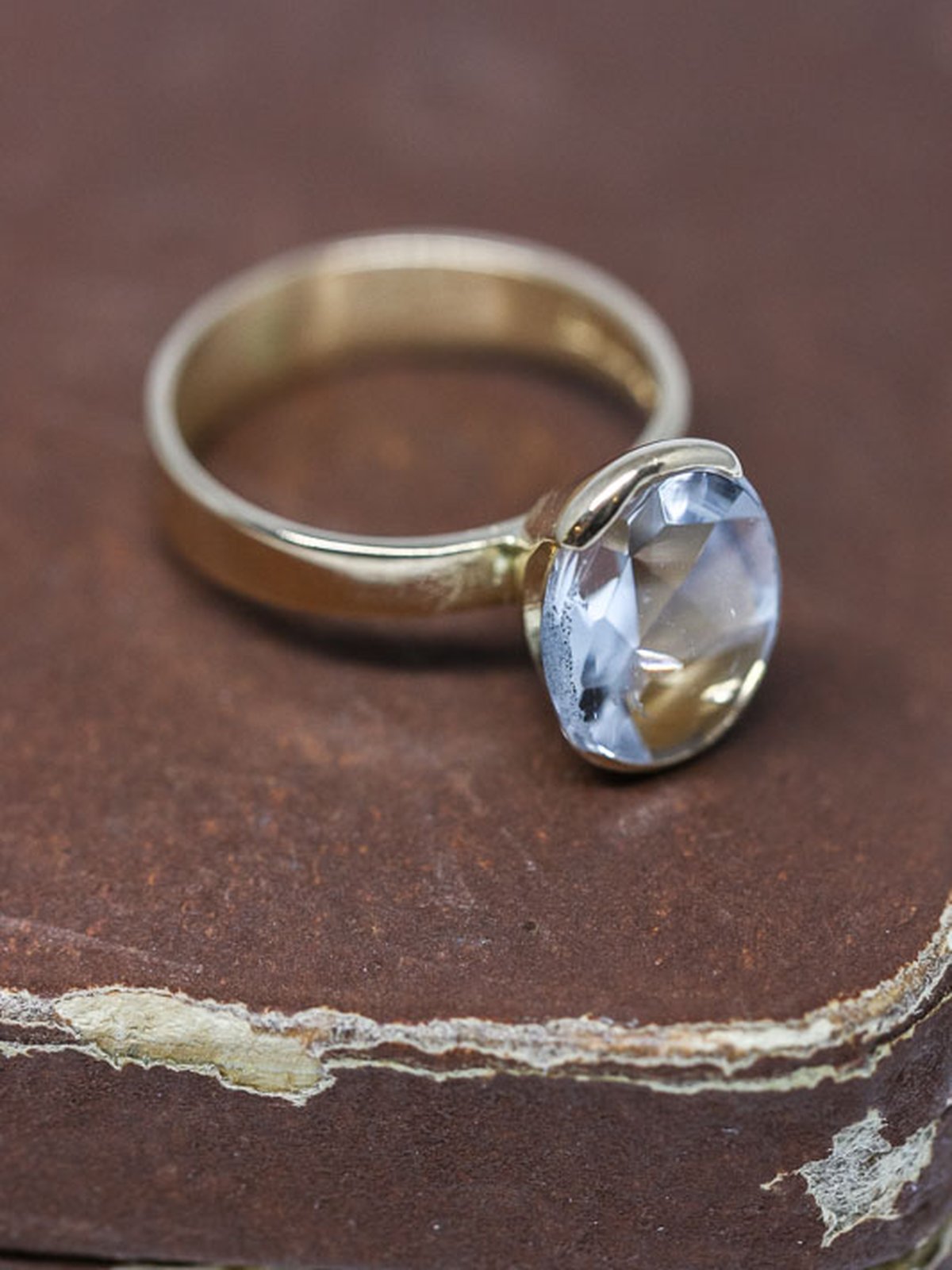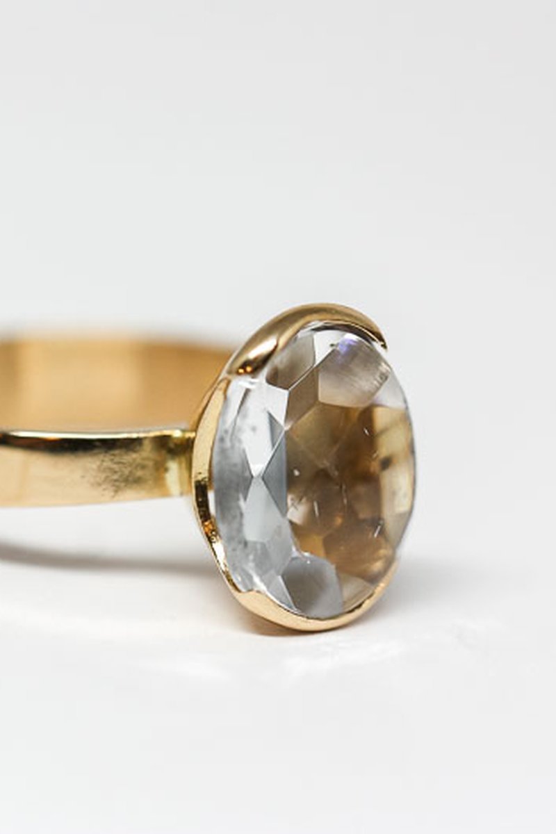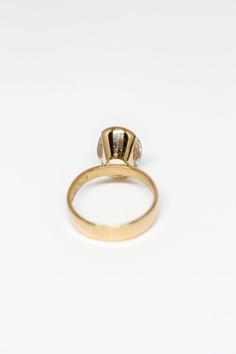 Läcker guldring med vit oval sten tillverkad år 1964 i Stockholm. Går att storleksändra.