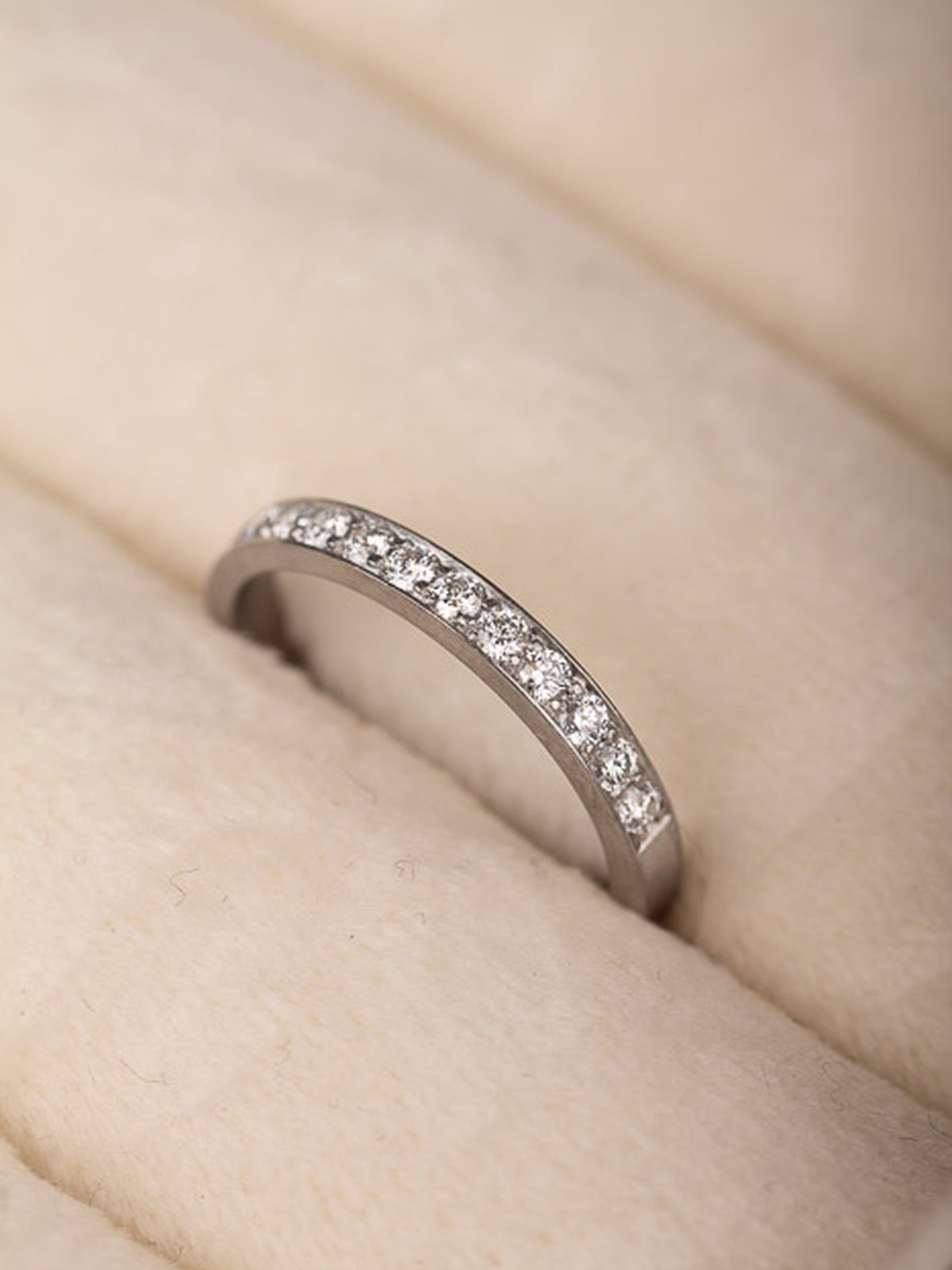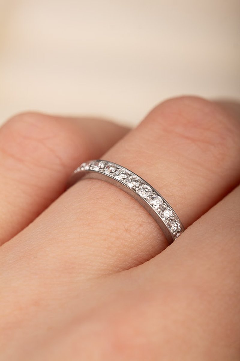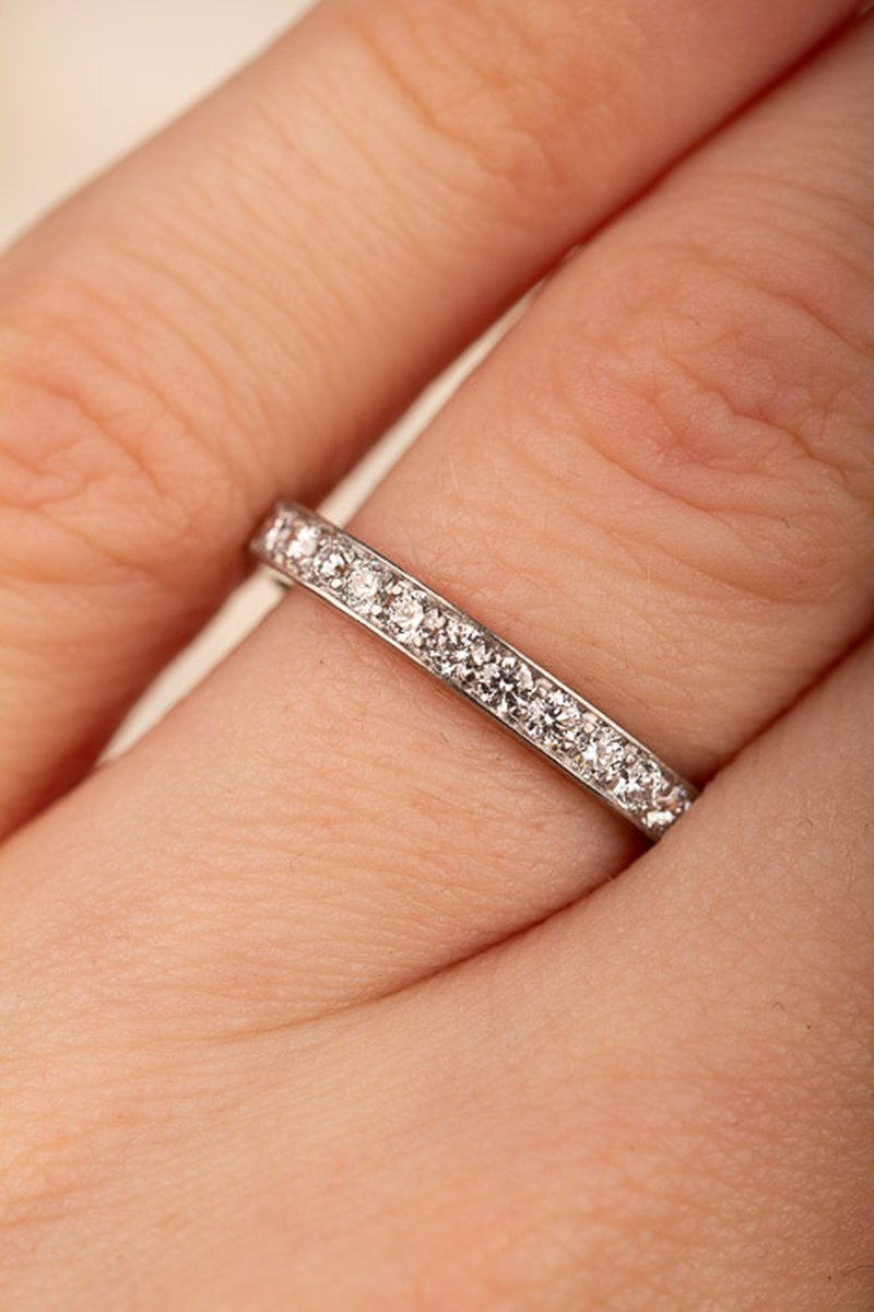 Fadeninfattade vita diamanter i den här vitguldsalliansen från Engelbert. Högkvalitativ ring i gott skick.
