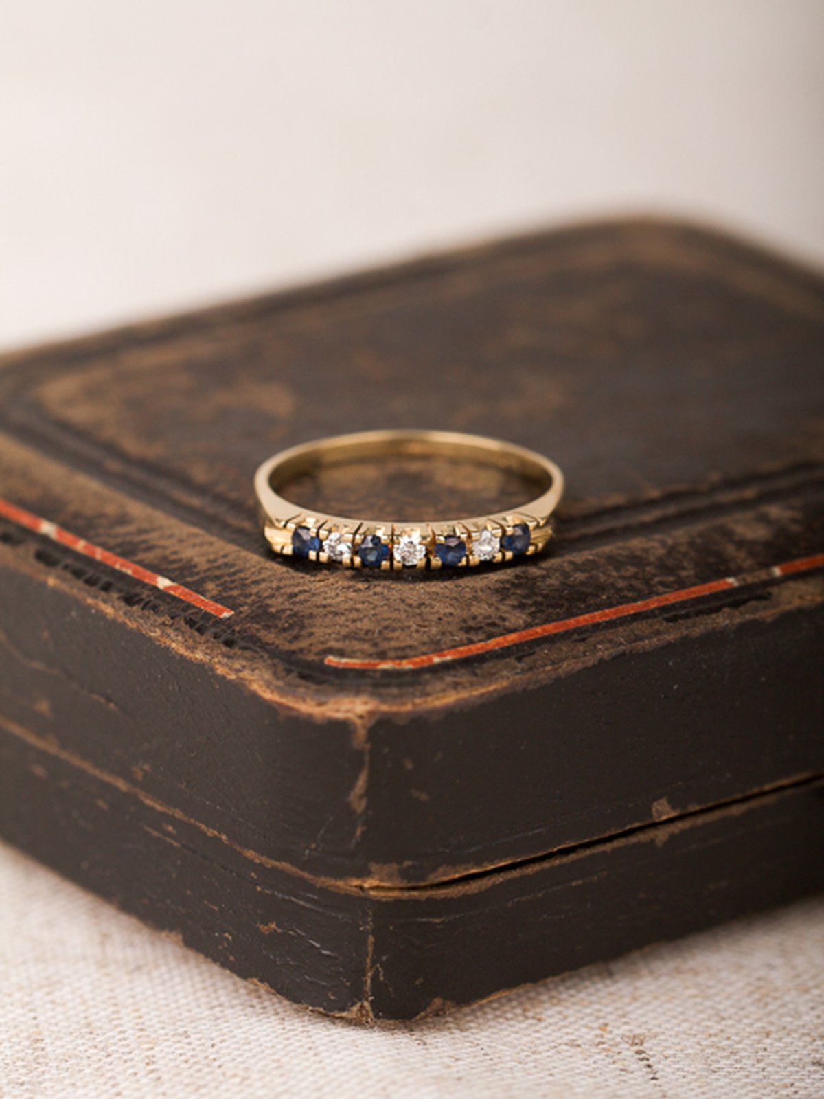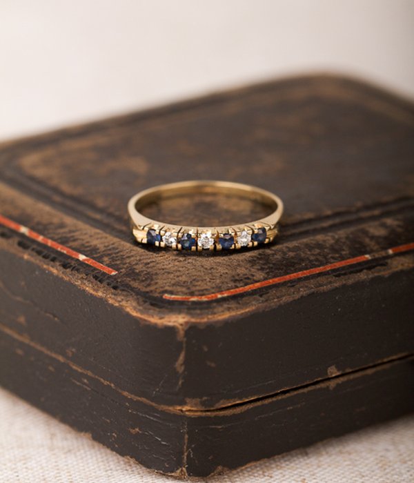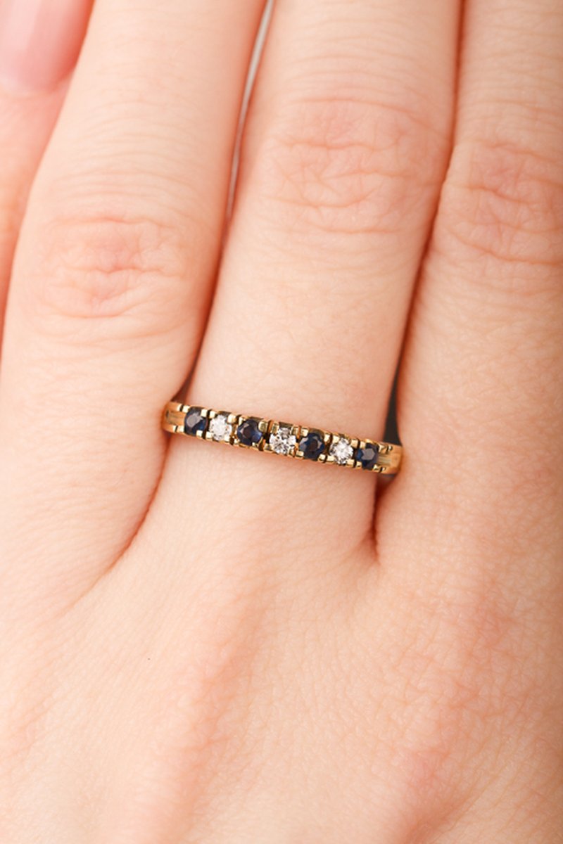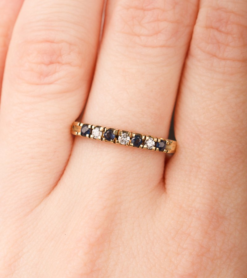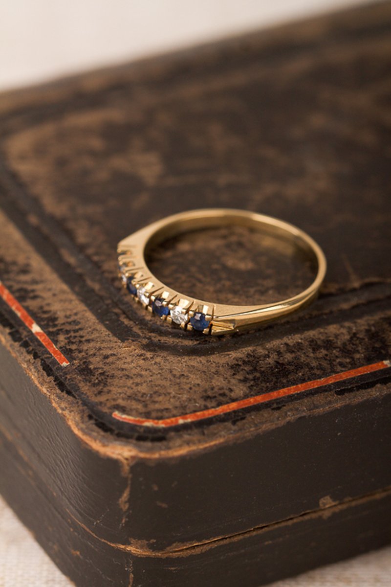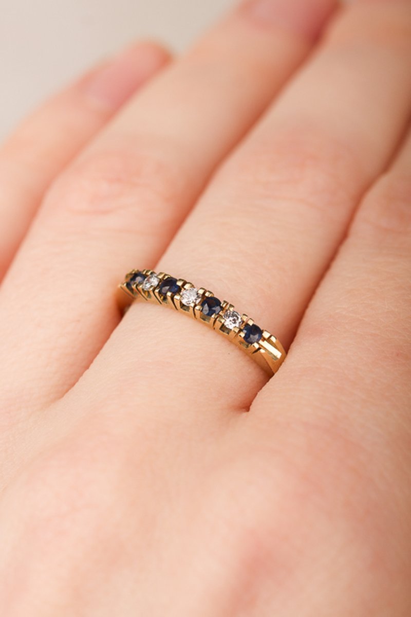 18K guld, 4 safirer á 1,9 mm, 3 x 0,03 ct diamanter
