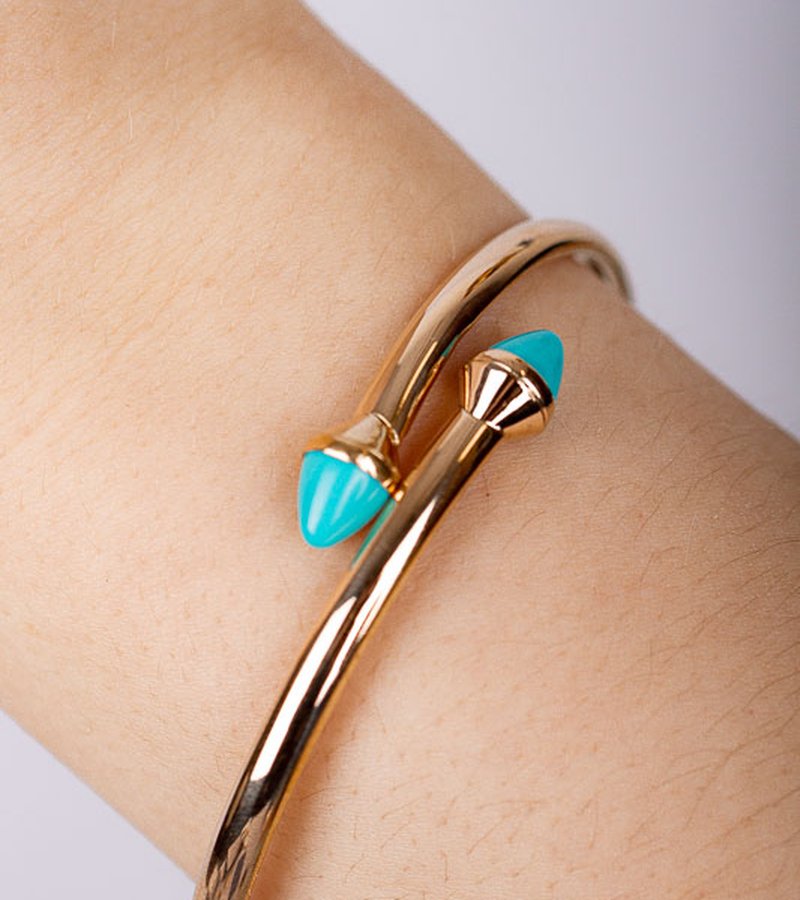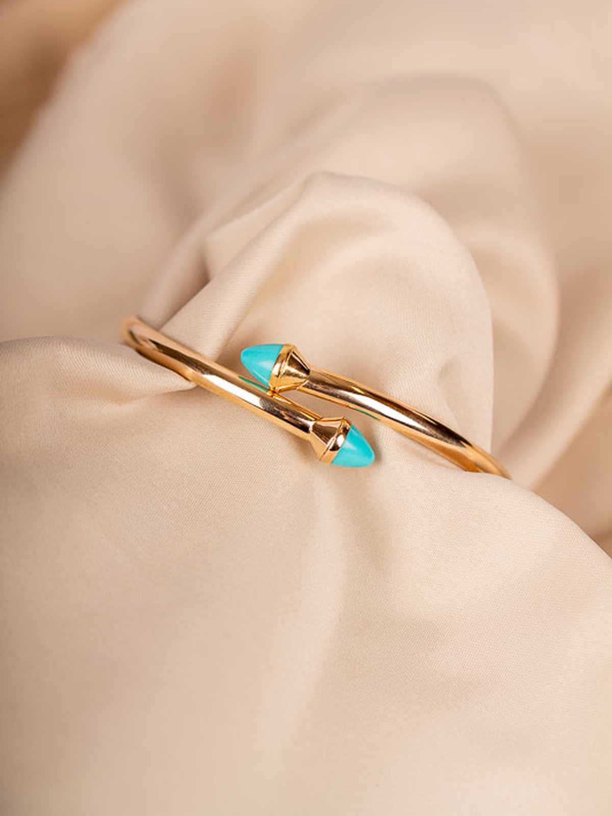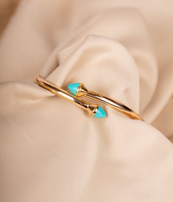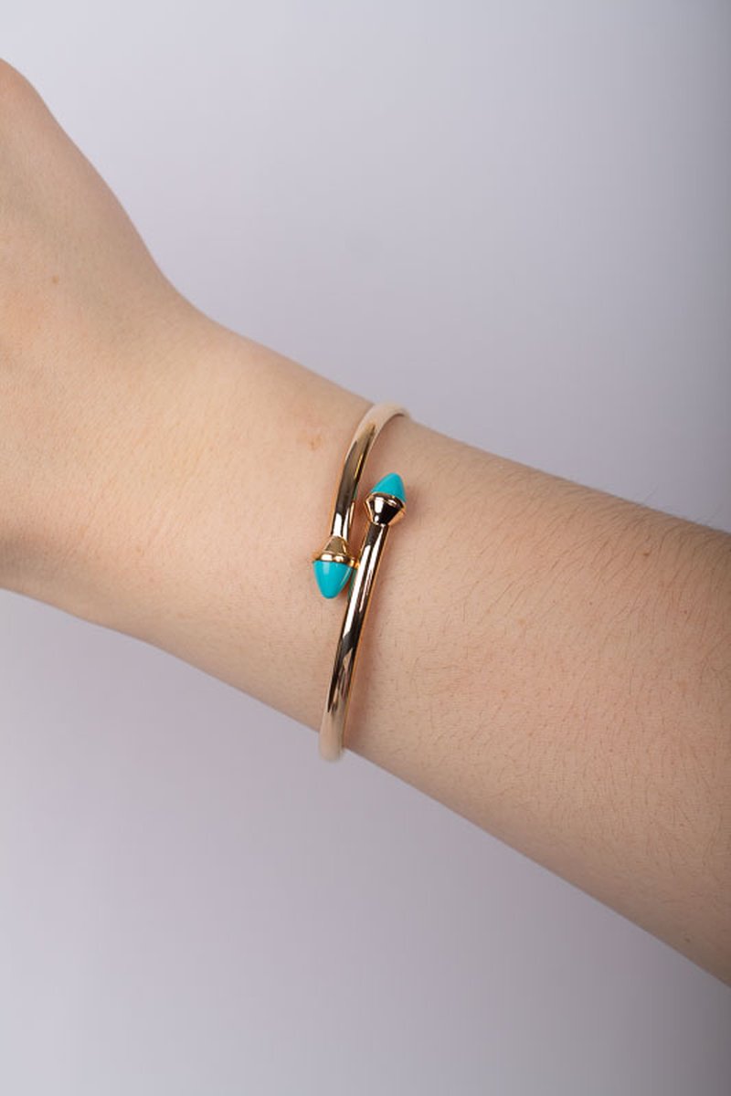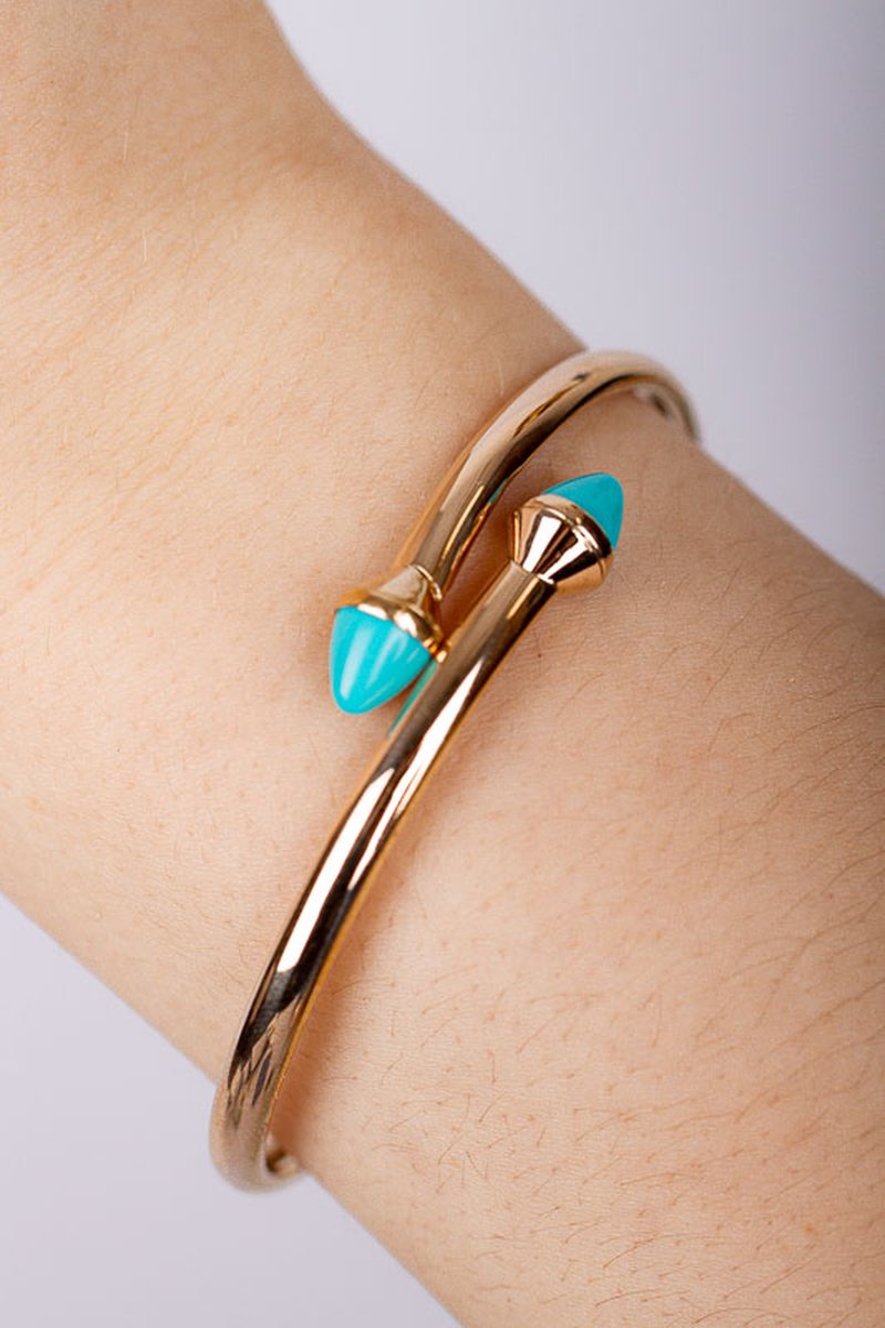 Vintage-bangle tillverkat av Alton 1966 med turkosa stenar. Armbandet är något böjbart för att underlätta vid av- och påtagning.