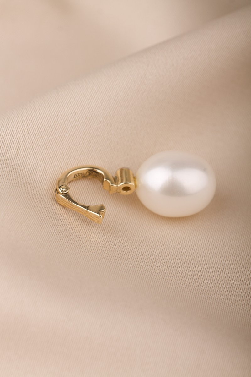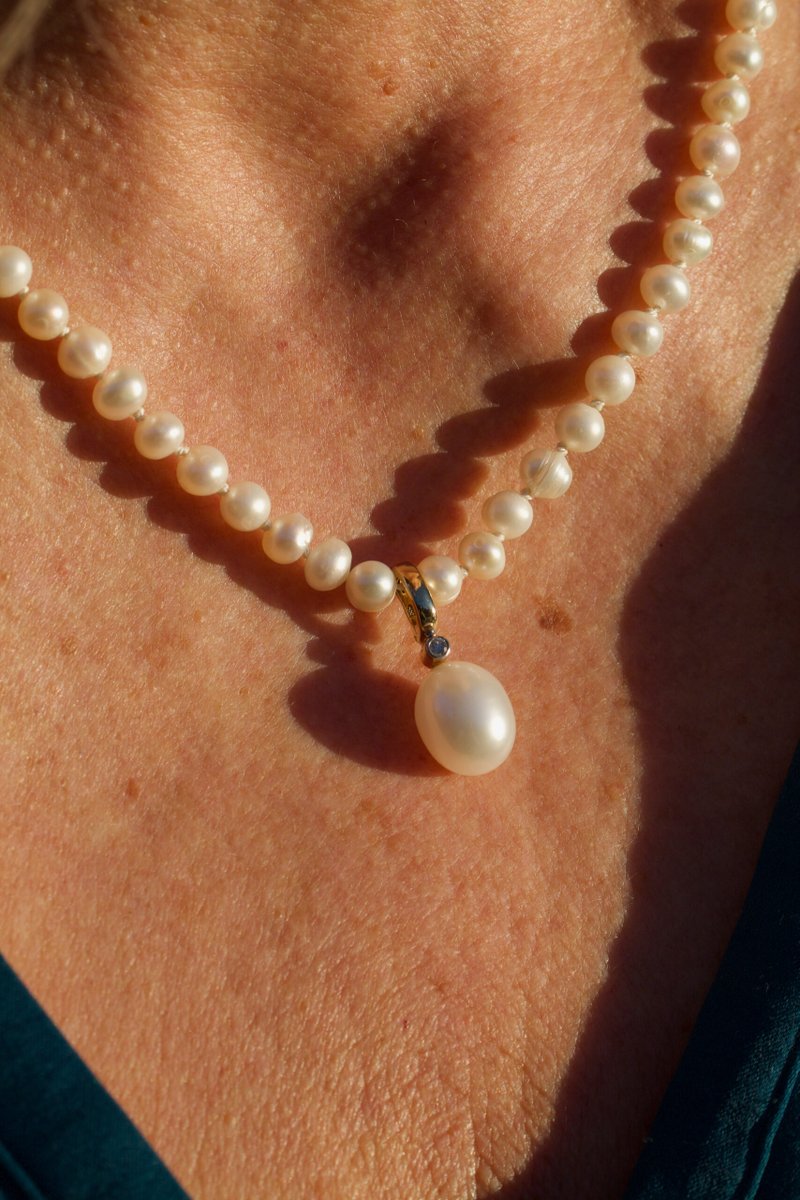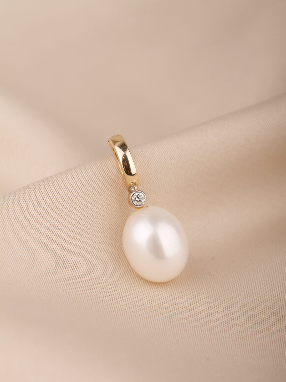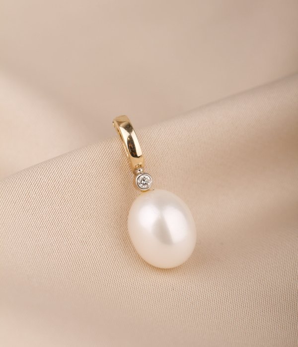 14K guld, 0,03 ct briljantslipad diamant, odlad pärla 10 x 12 mm