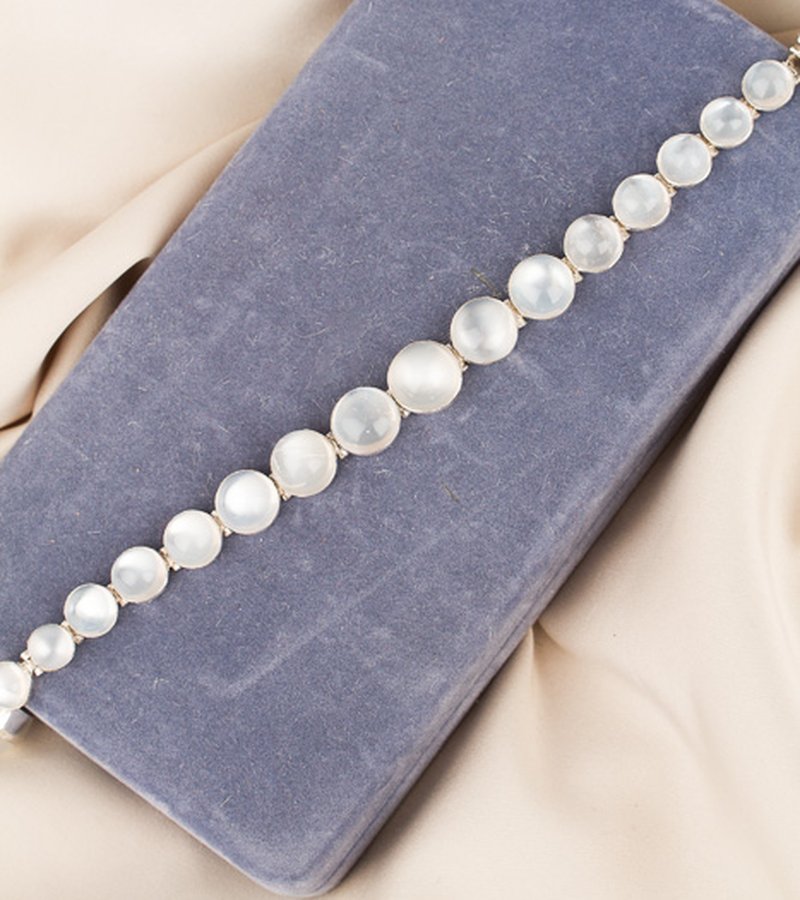 Pärlcollier förvaras bäst liggandes på en mjuk yta, dock inte av bomull. Detta torkar ur pärlorna.