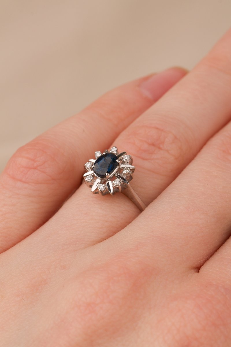 18K vitguld, oäkta stenar