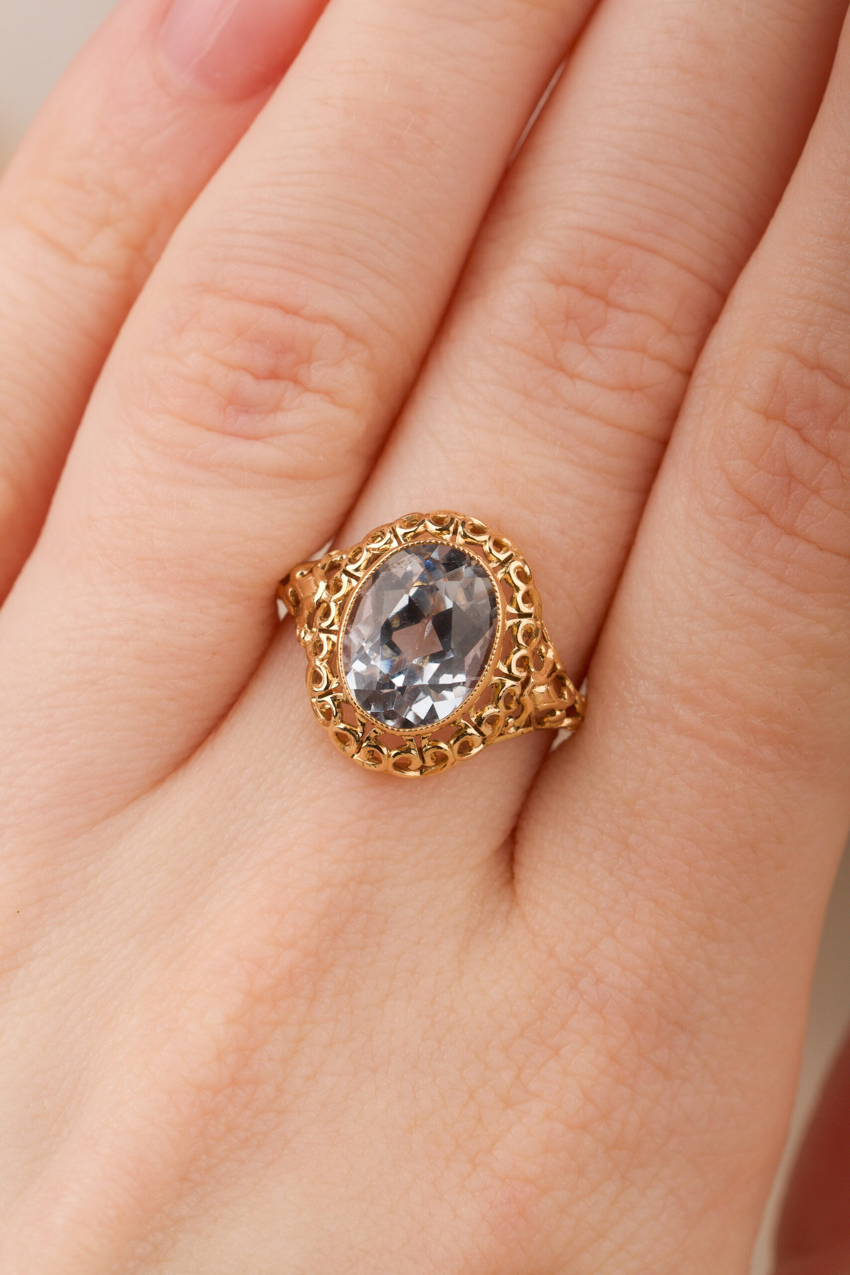 18K guld, blå imitationssten
