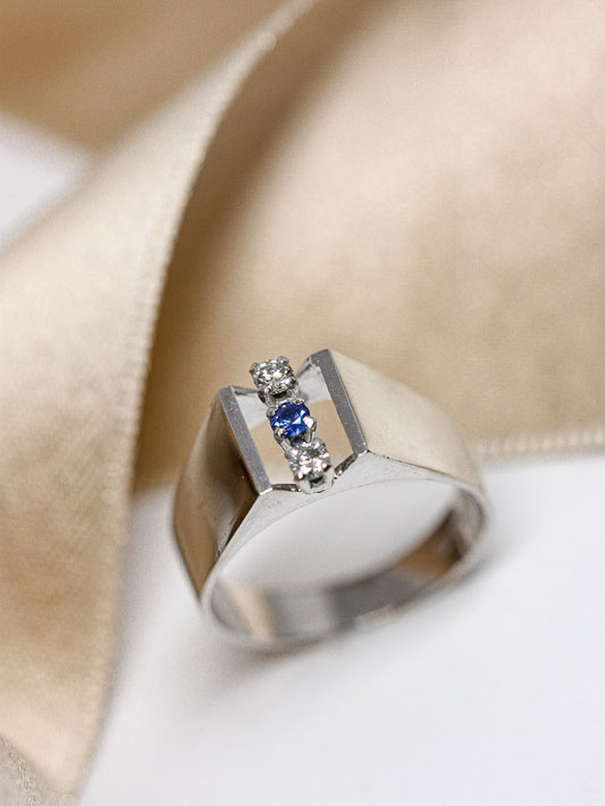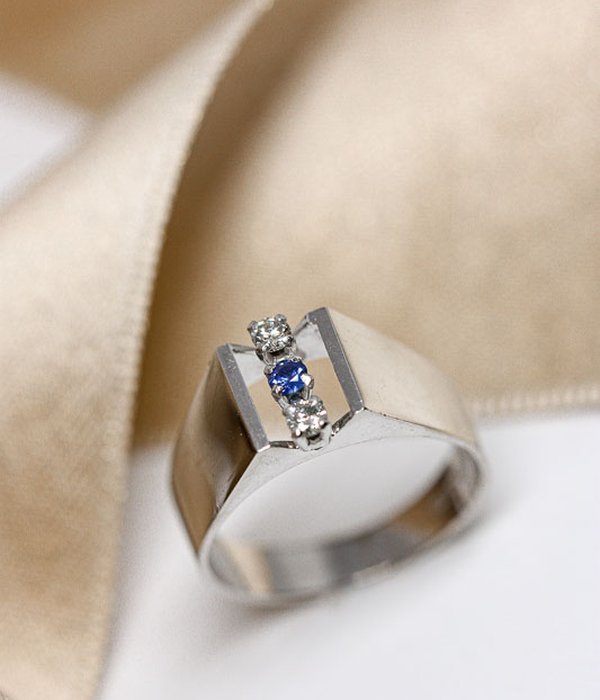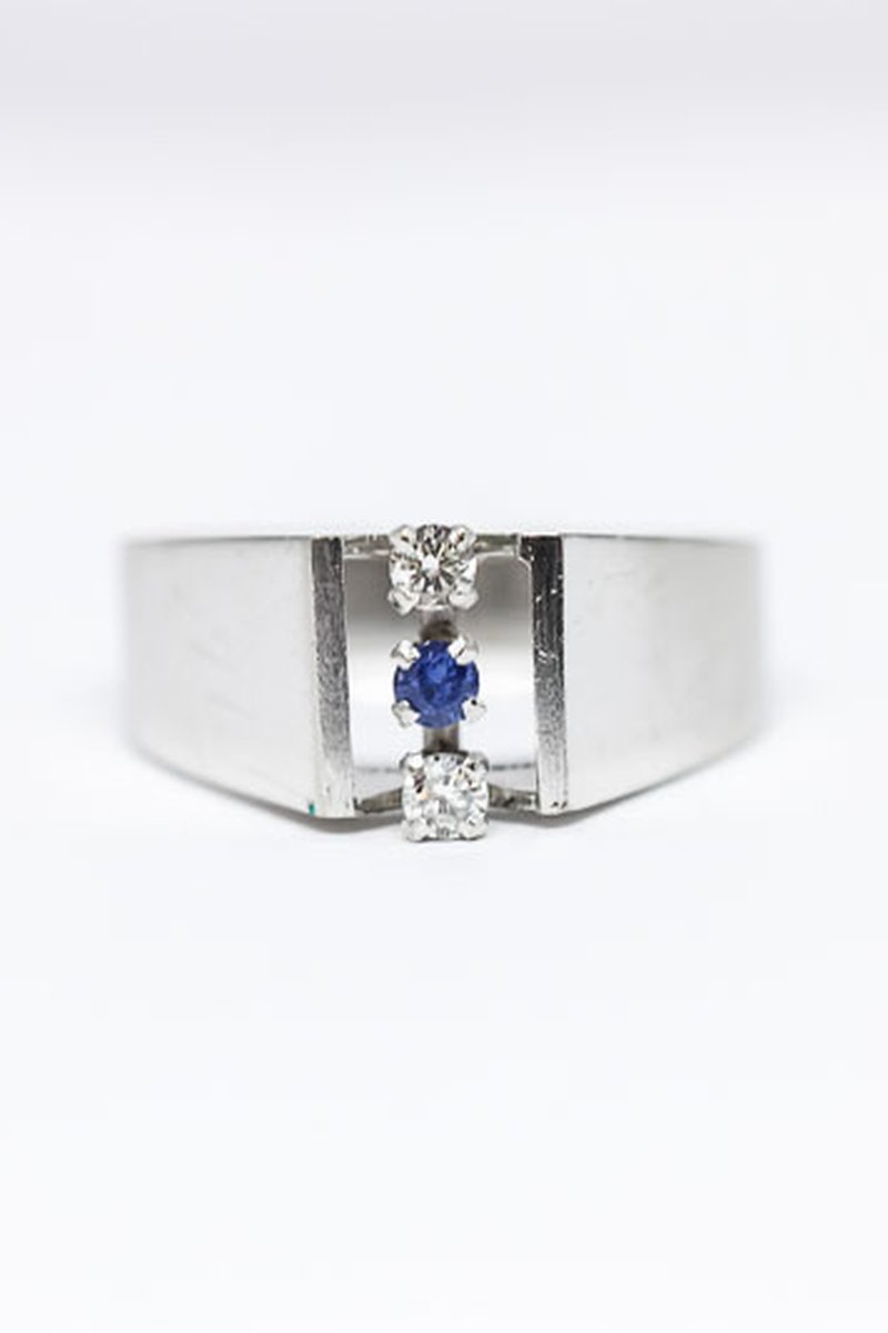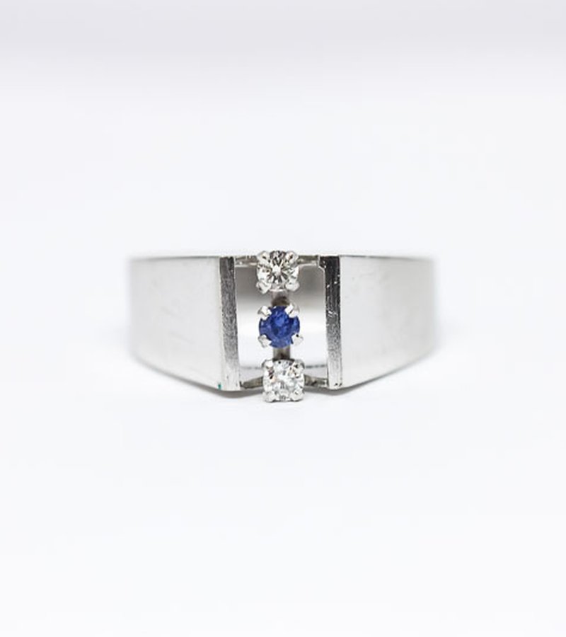 18k, safir och 2st 0,06ct diamanter