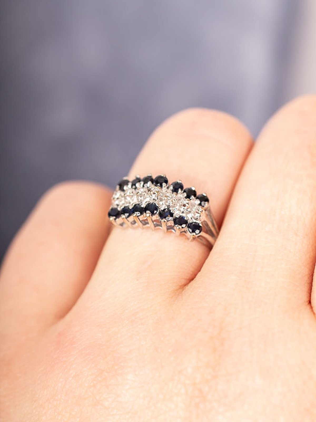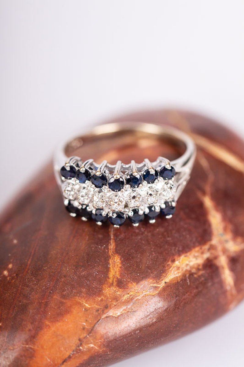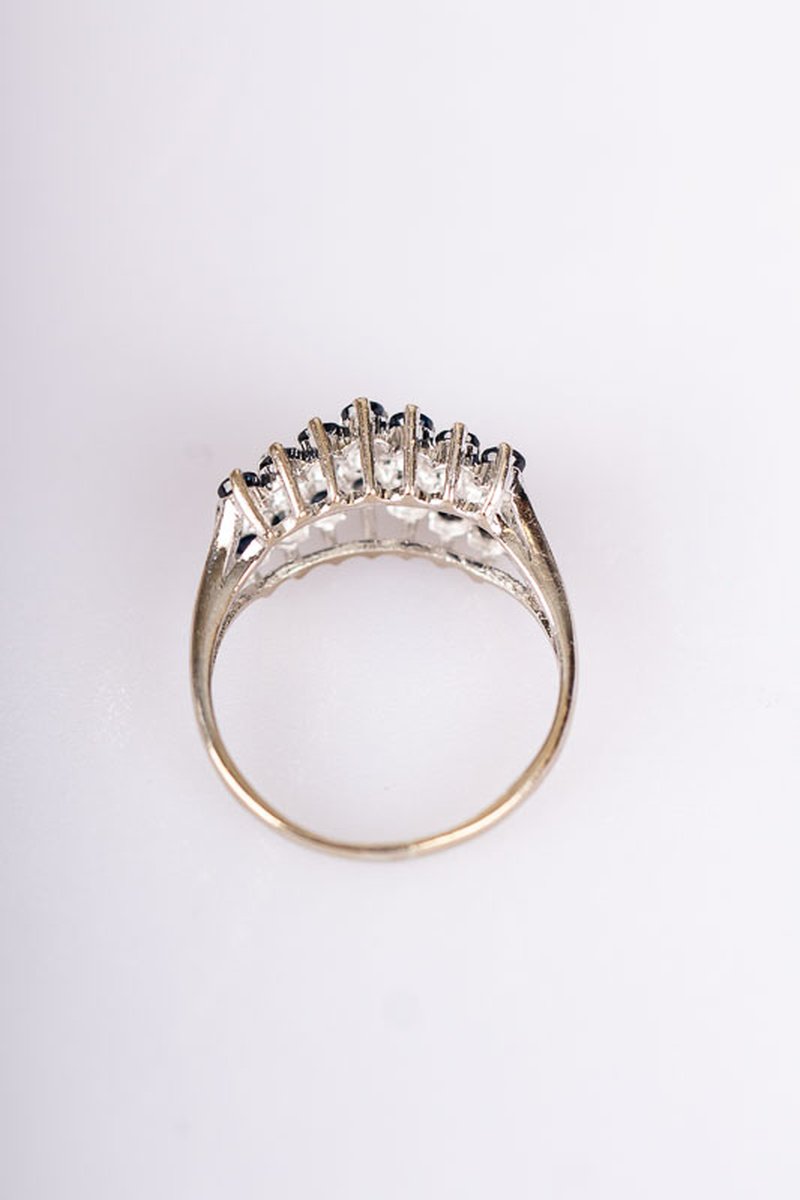 Underbar vitguldsring fullproppad med diamanter och safirer. En riktig vintage-skatt!