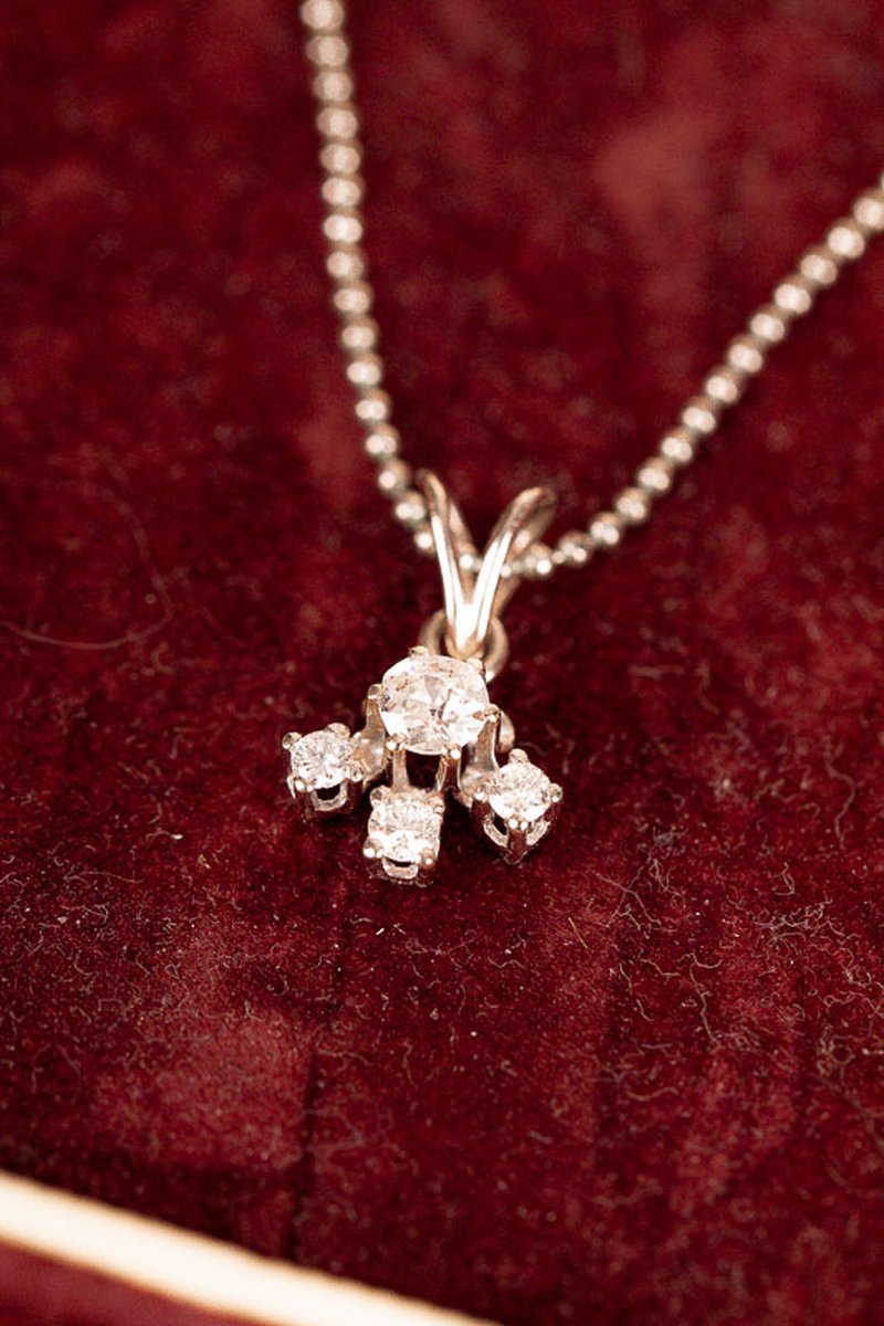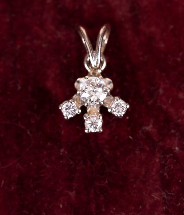 Underbart diamanthänge i vitguld med totalt 0,35ct briljantslipade diamanter. Hänger vackert och stilla runt halsen tack vare den breda spetsöglan. OBS! Kedjan på bilden är oäkta, ingår ej.