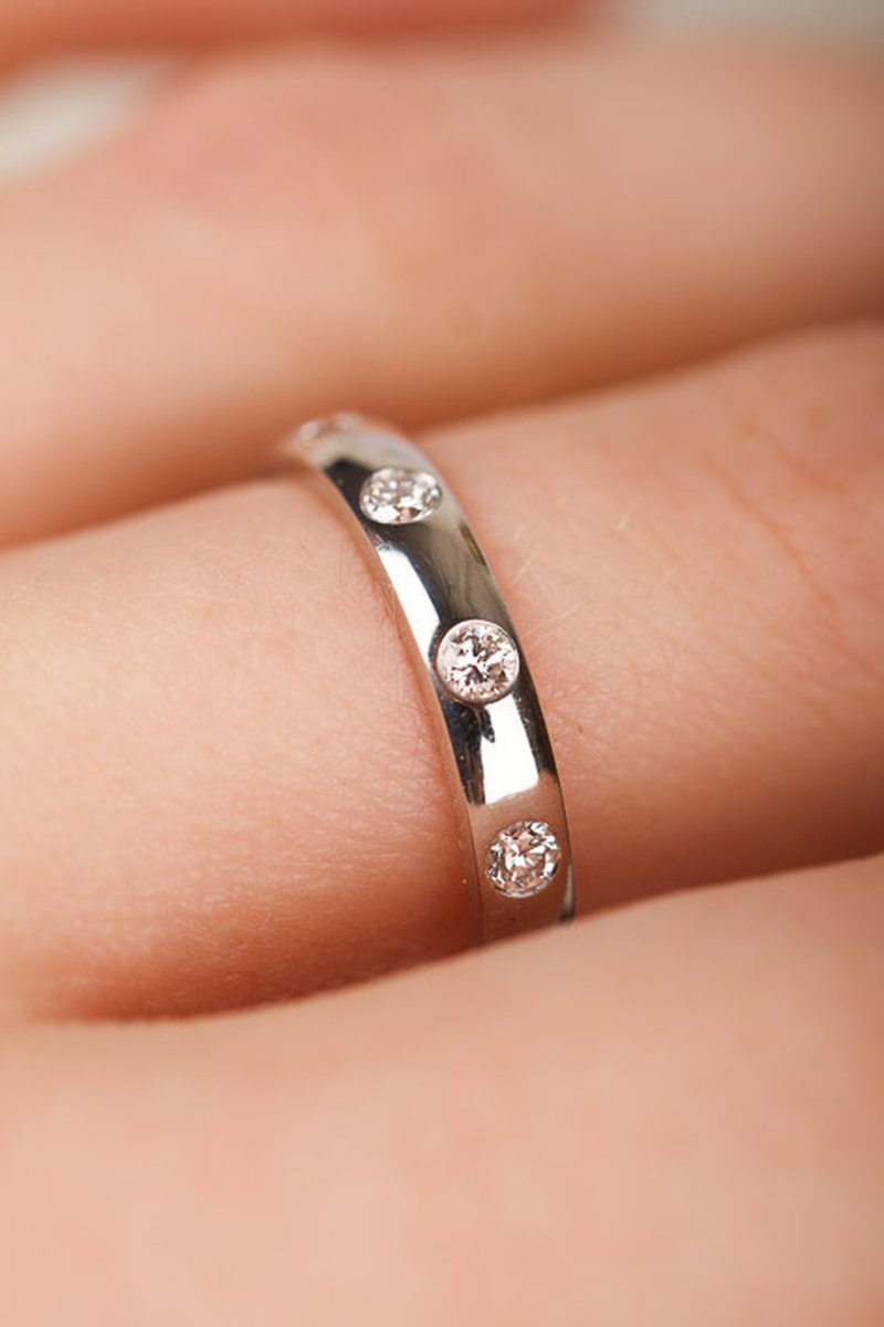 Diamantring i fint skick. Passar både som vigselring eller vardagsring, ringen går bra att öka lite i storlek vid behov.