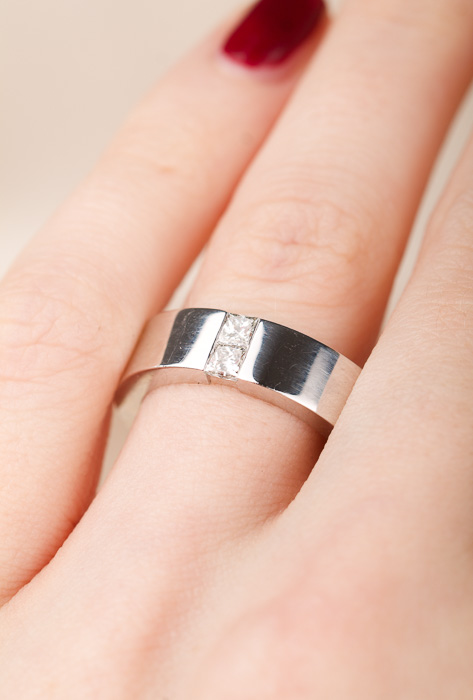 18K vitguld, 2 x 0,12 prinsesslipade diamanter