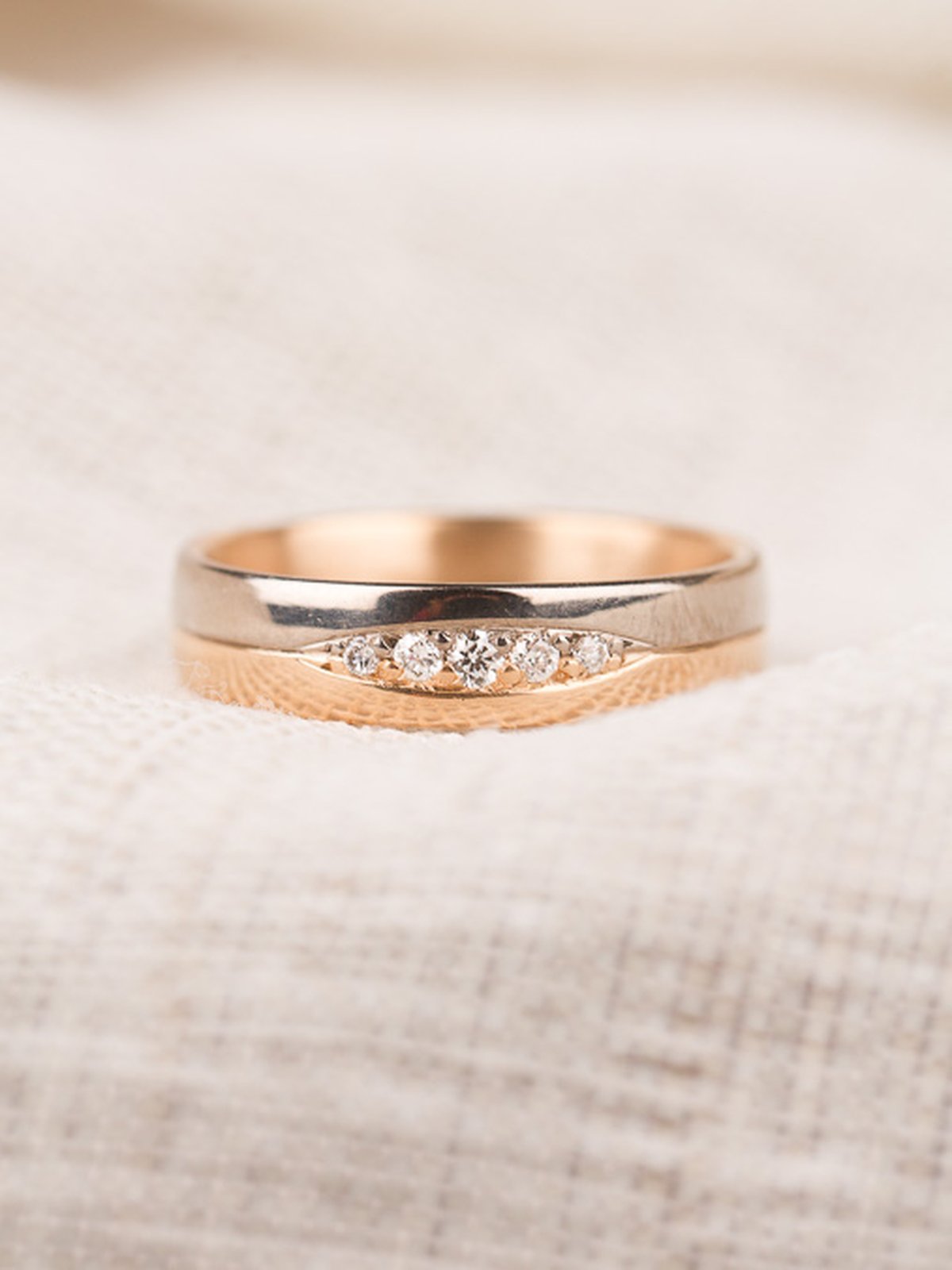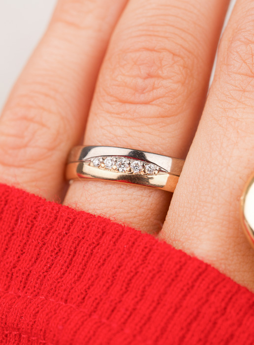 18K röd- och vitguld, 1 x 0,03, 2 x 0,02 & 2 x 0,01 ct briljantslipade diamanter