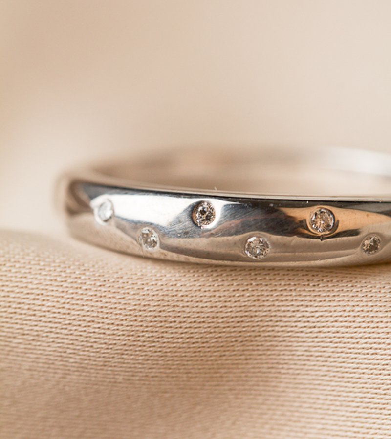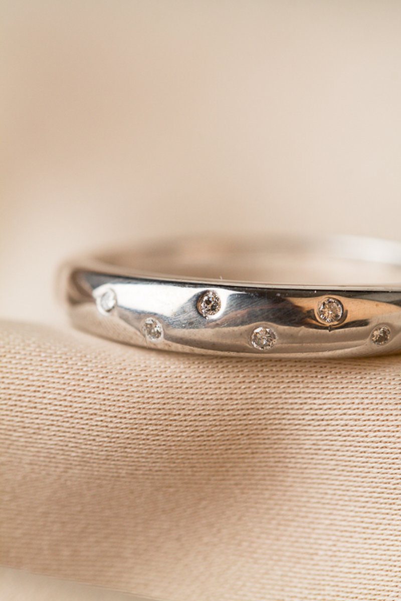 Vacker vitguldsring med strösselinfrttade diamanter tillverkad år 1997.