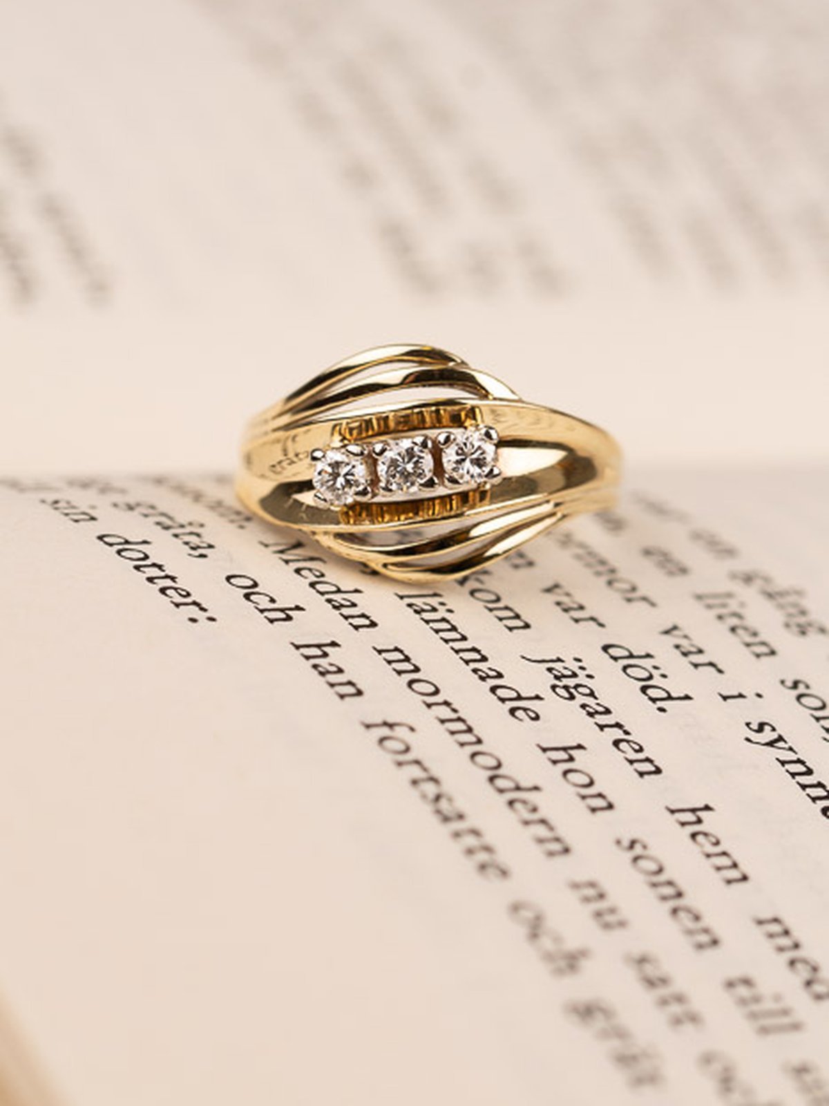 Diamantring i gult guld