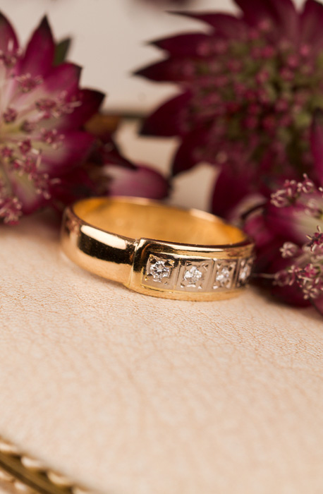 Vitguldsinfattade briljanter i den här breda alliansringen tillverkad av Folke Sundberg 1965.