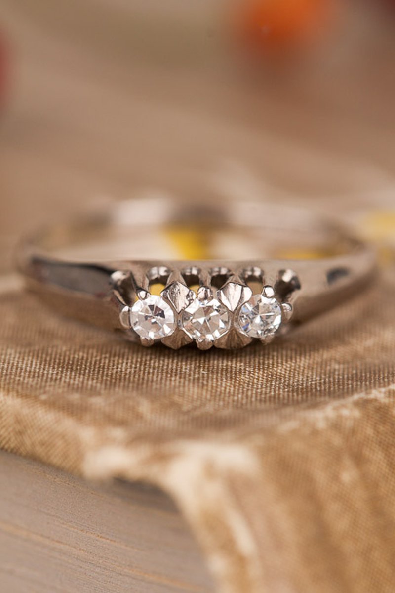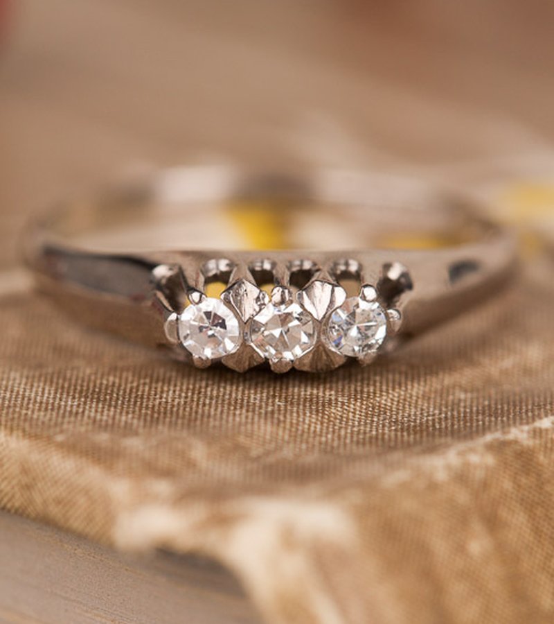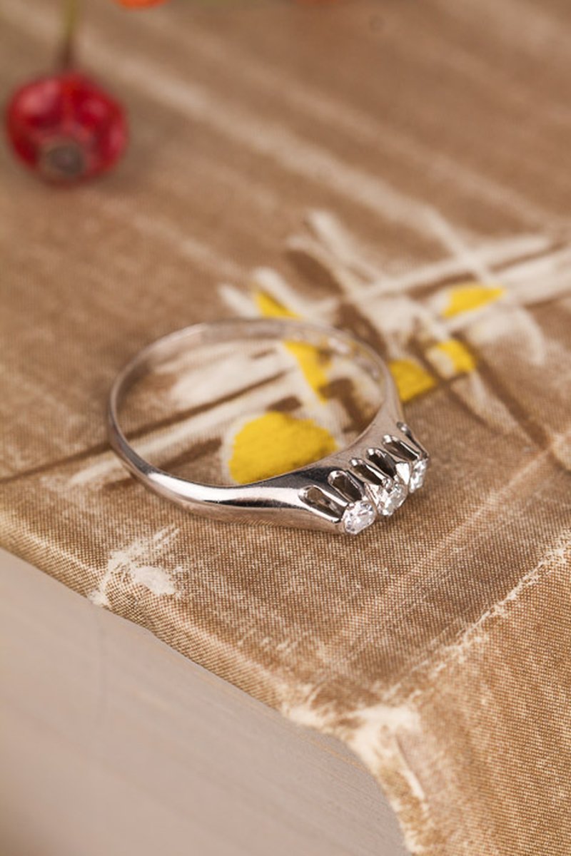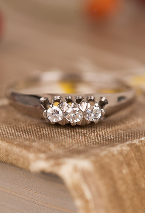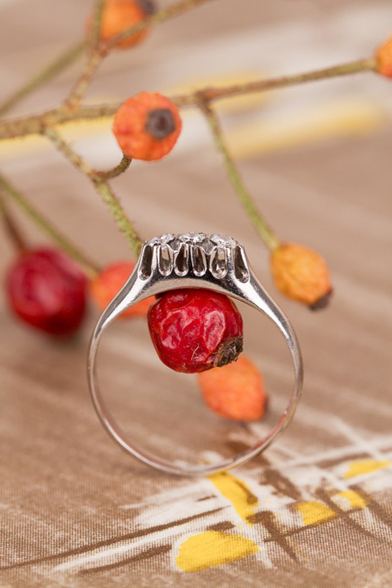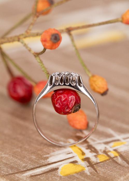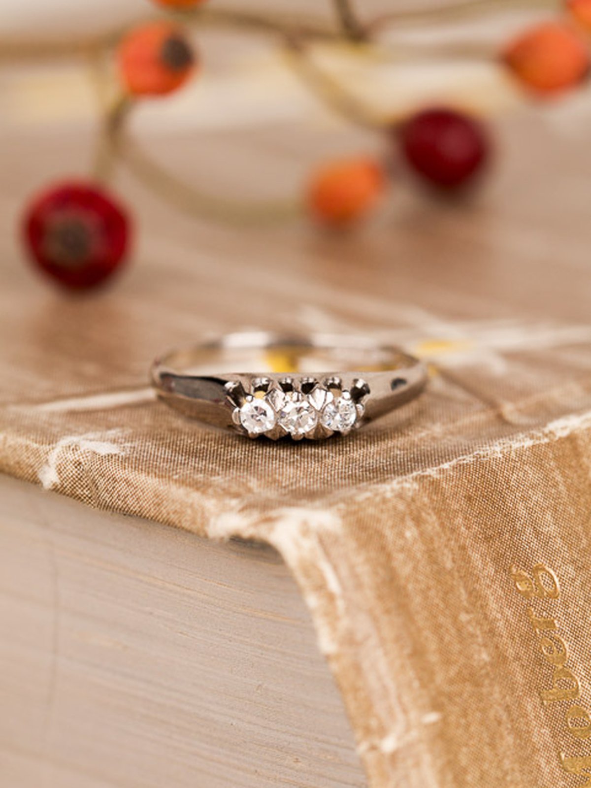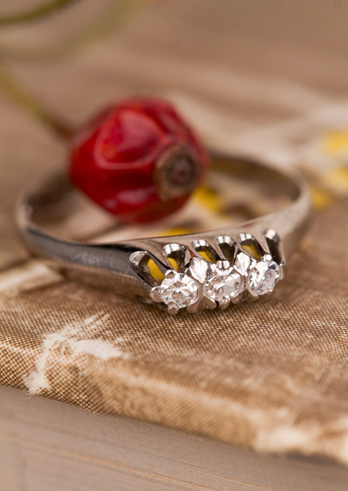 Vacker vintage-ring med tre diamanter (totalt 0,09 ct)