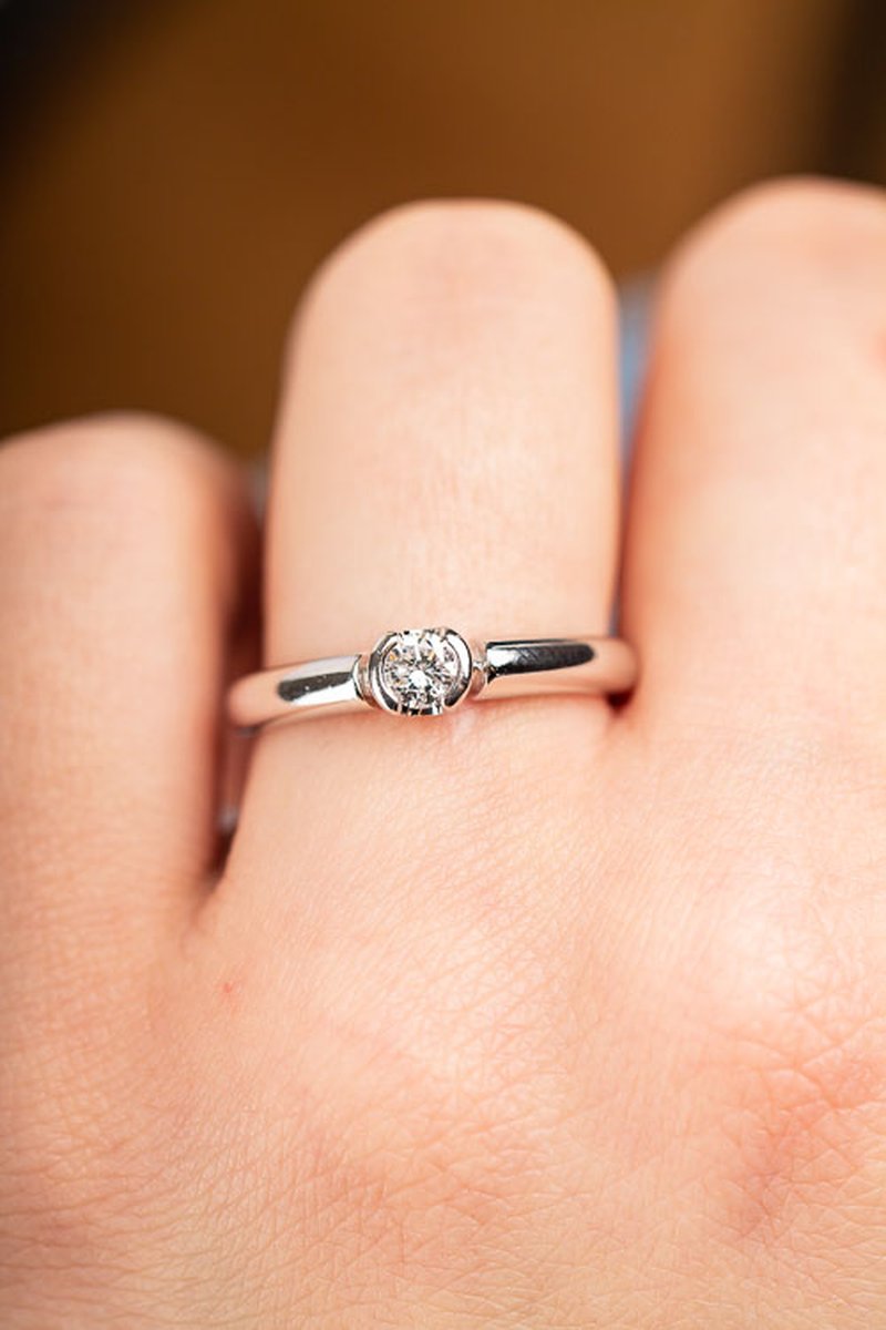 Modellen Dione från Stjärnringen med 0,24ct briljantslipad diamant. Färg: Top Wesselton. Ingår i Stjärnringens koncept diamanten som växer.