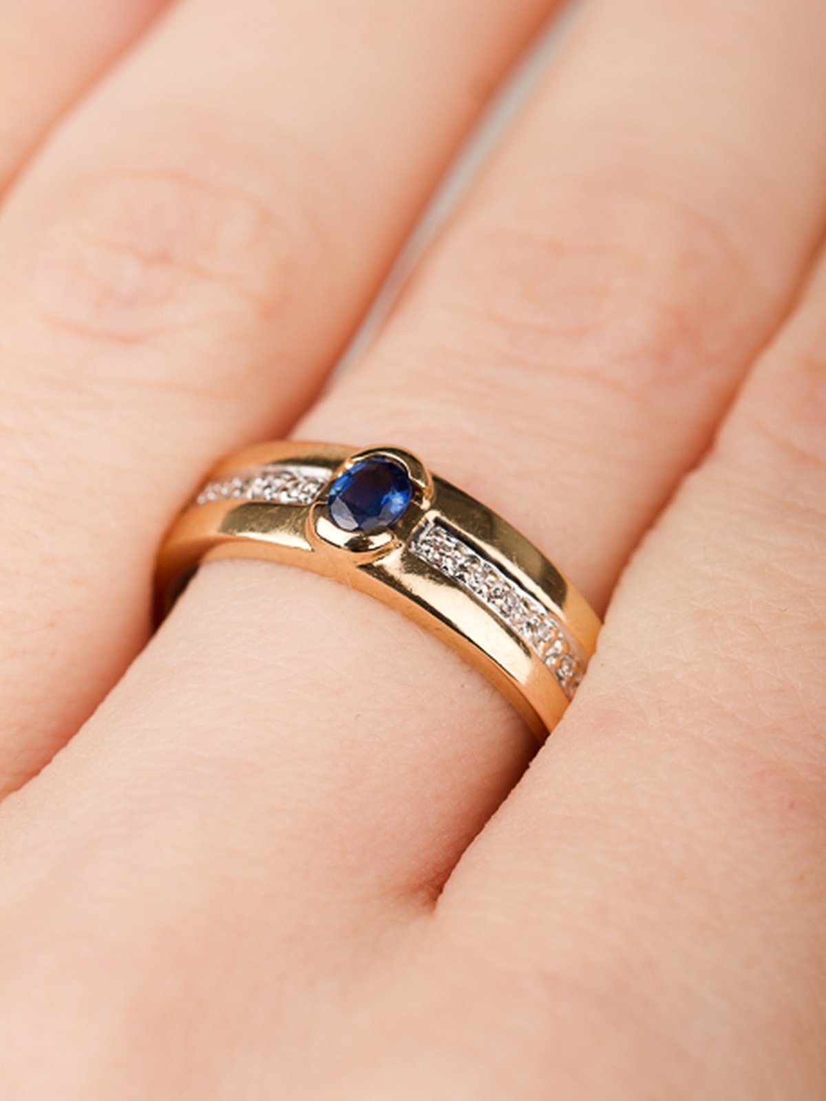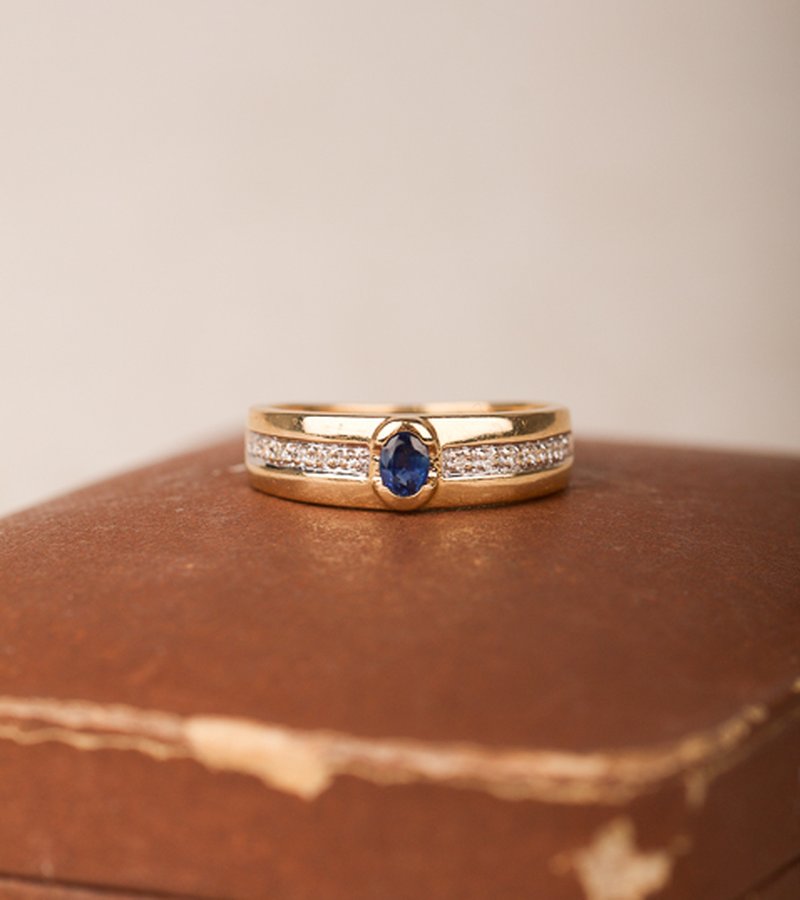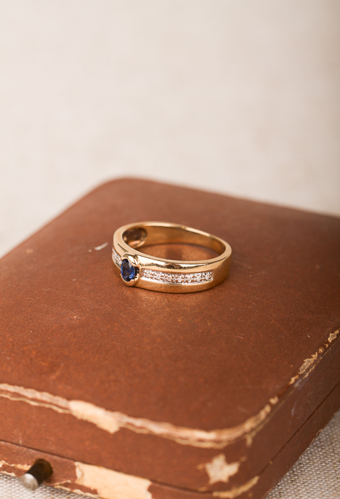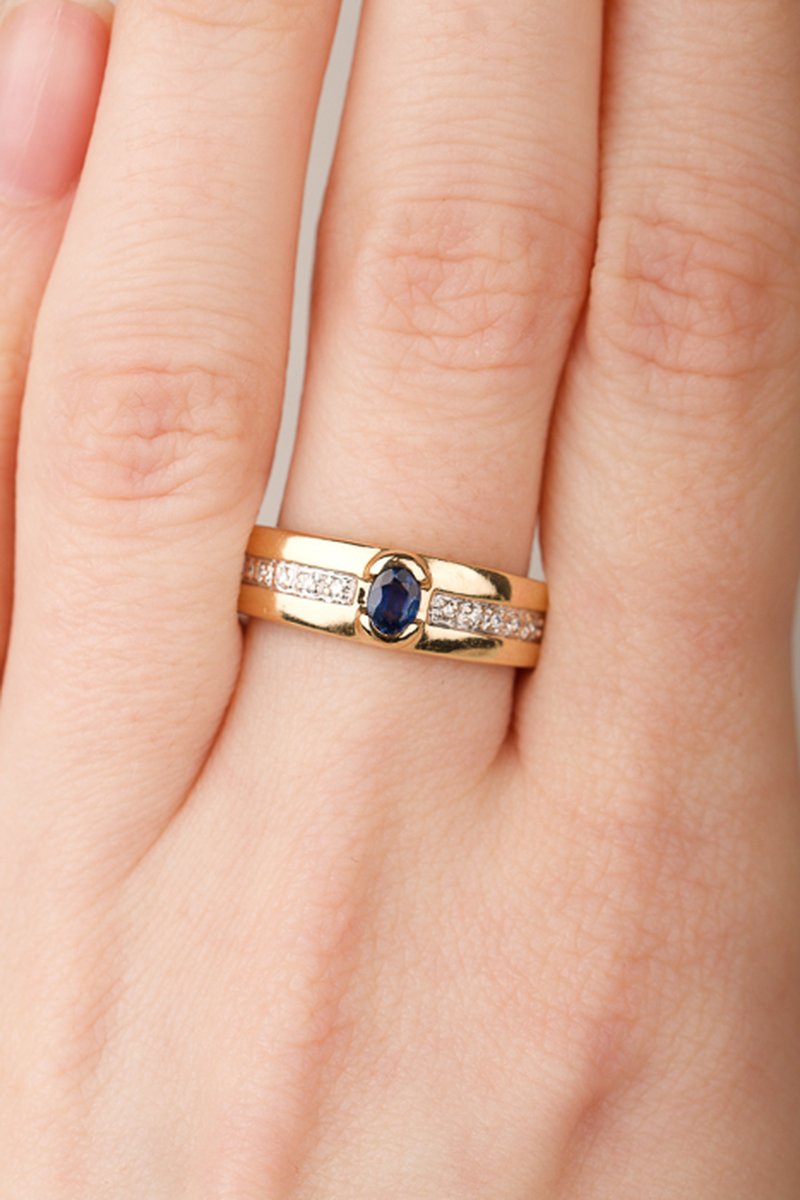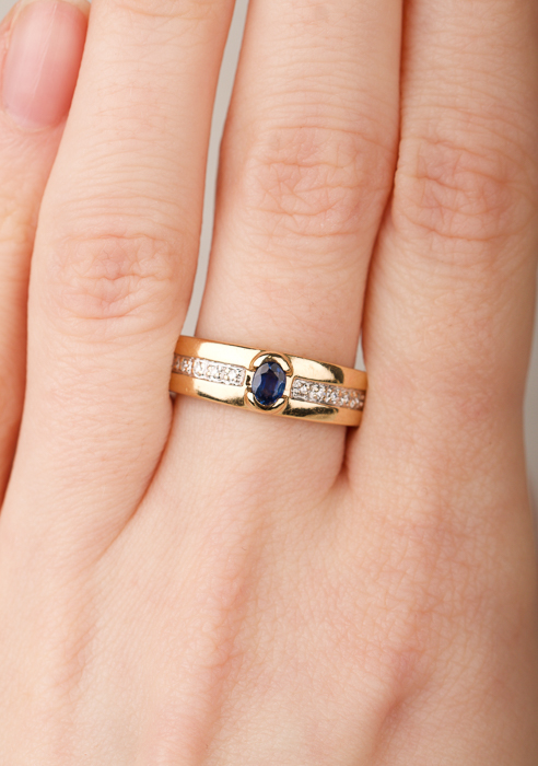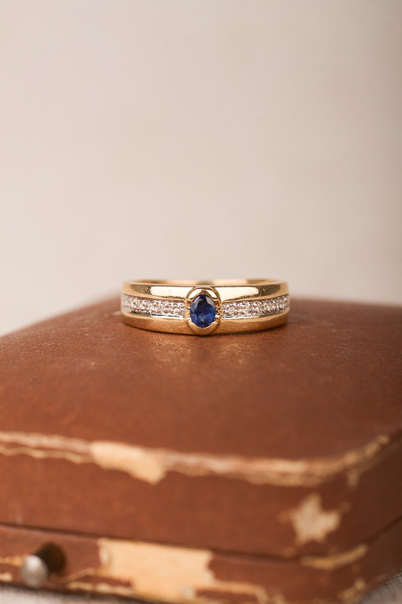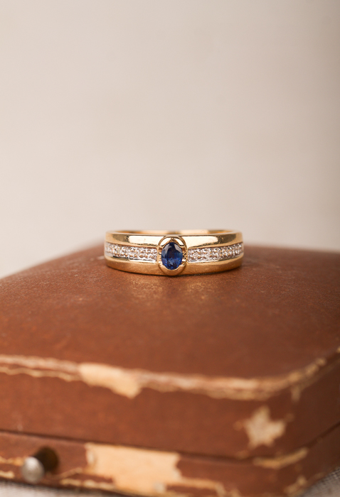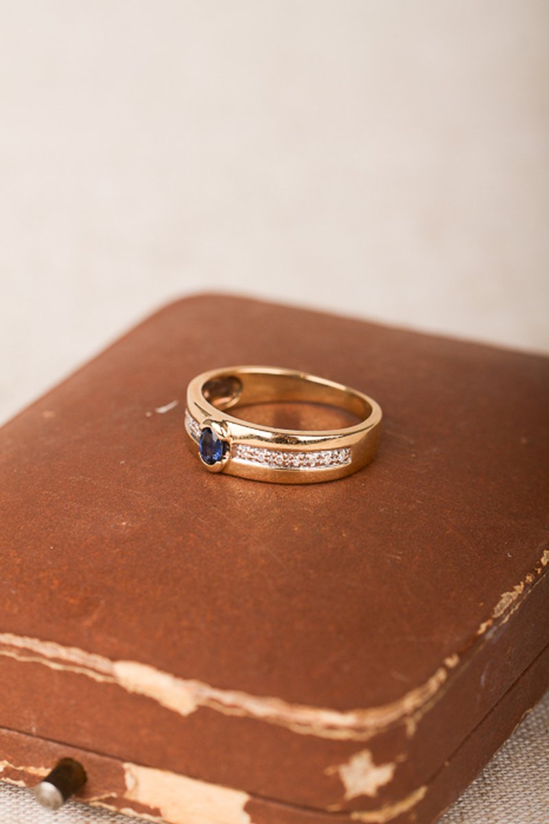 Guldring med en safir och diamanter