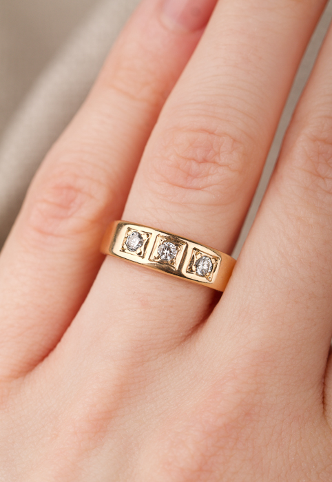 18K guld, 0,21 ct diamanter (0,08, 0,07 & 0,06 ct) TW/VS