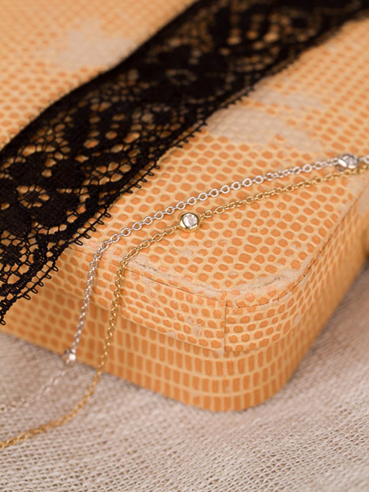 Pärlcollier förvaras bäst liggandes på en mjuk yta, dock inte av bomull. Detta torkar ur pärlorna.