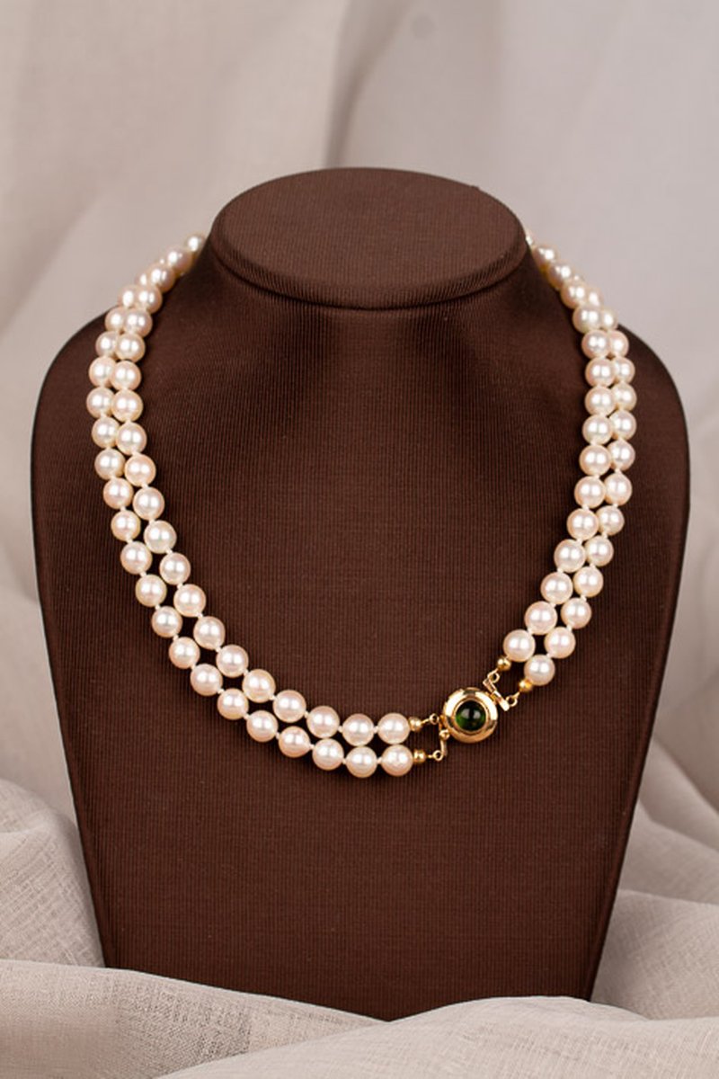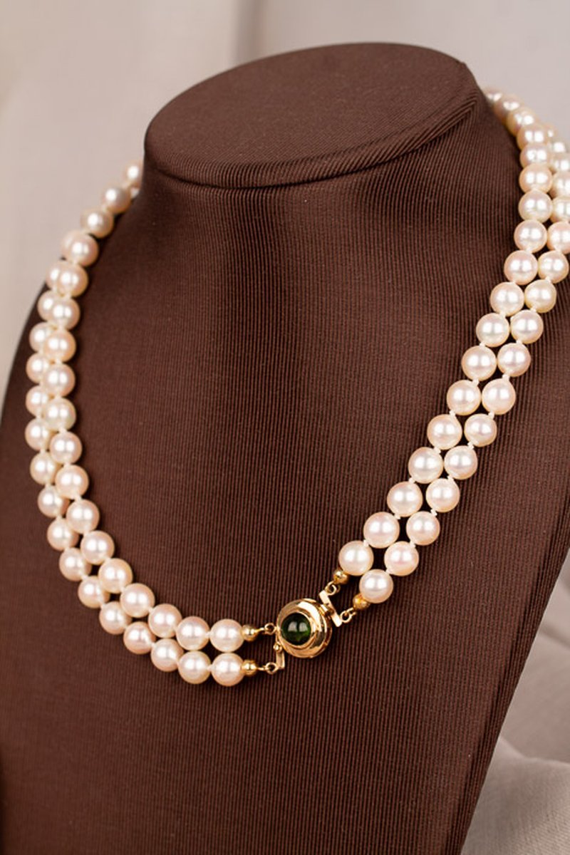 Pärlcollier förvaras bäst liggandes på en mjuk yta, dock inte av bomull. Detta torkar ur pärlorna.