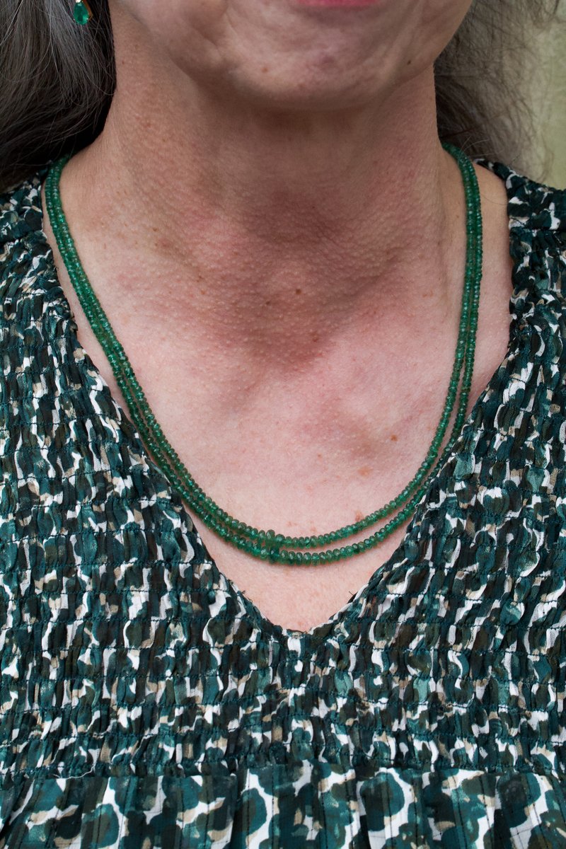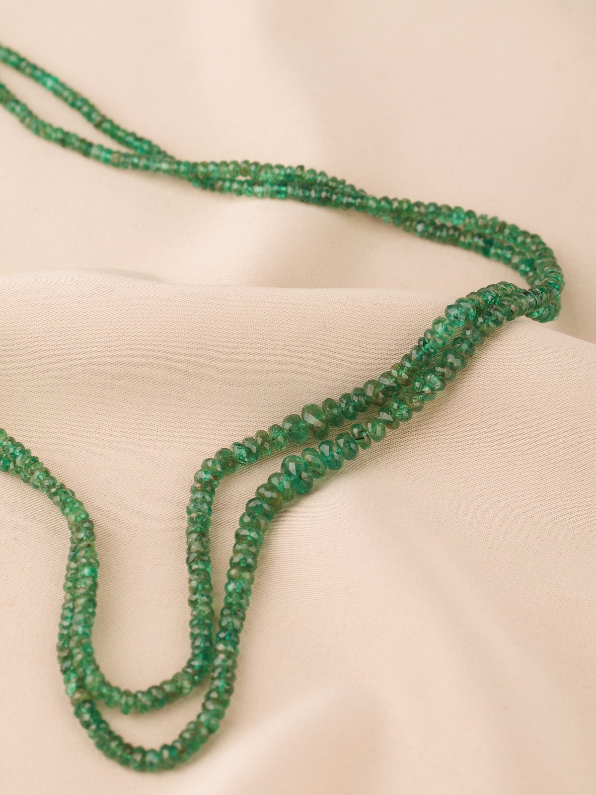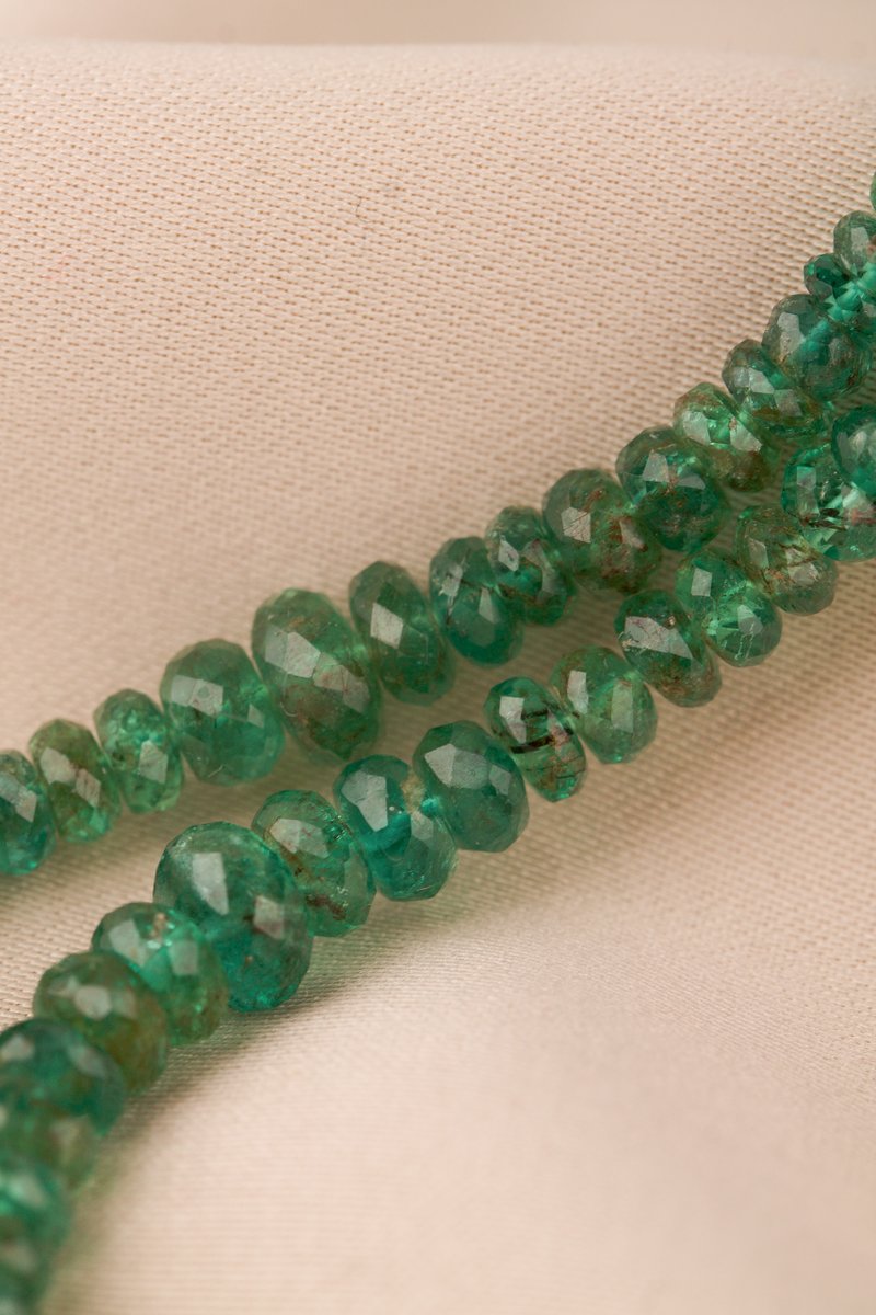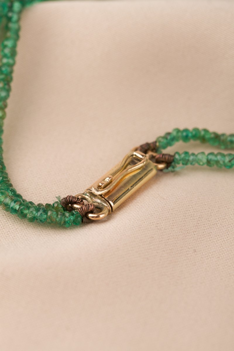 Lyxigt smaragdhalsband med dubbla rader och ett guldlås. Halsbandet har ett vackert lyster som tyvärr är svår att fånga på bild.