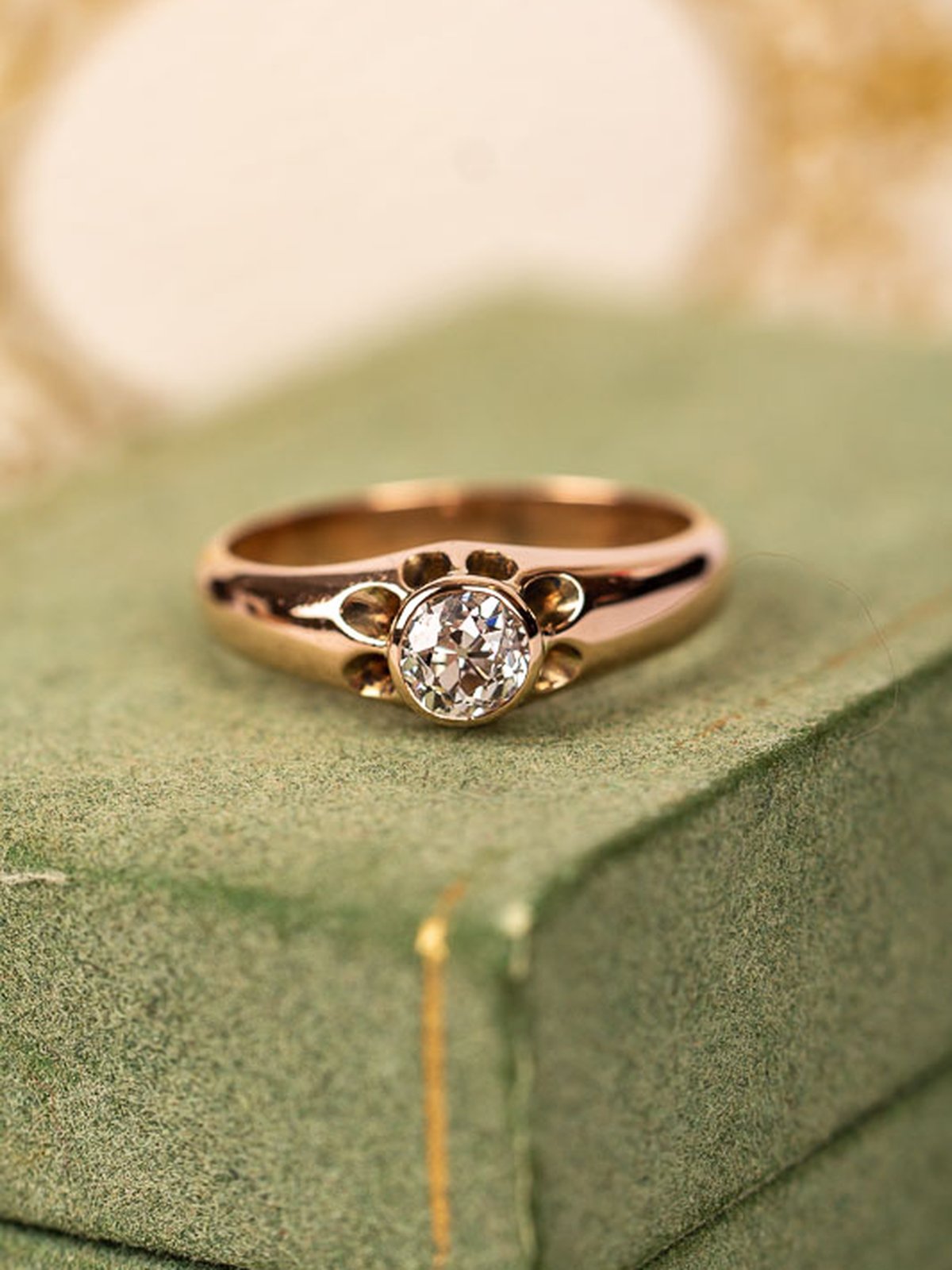 Vacker vintage ring med en 0,60ct gammelslipad diamant. Något för en äkta smyckesfantast. Går att storleksändra.