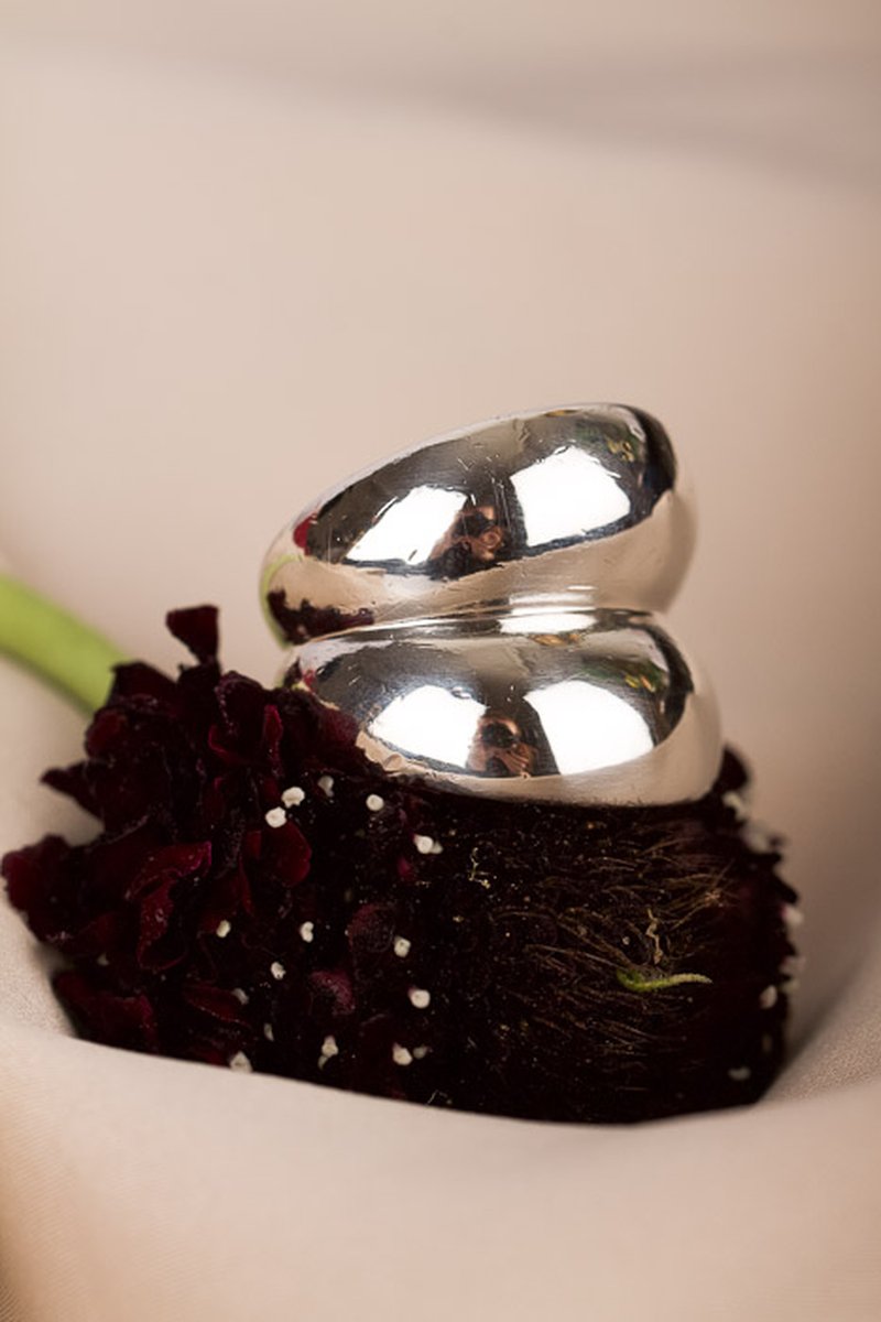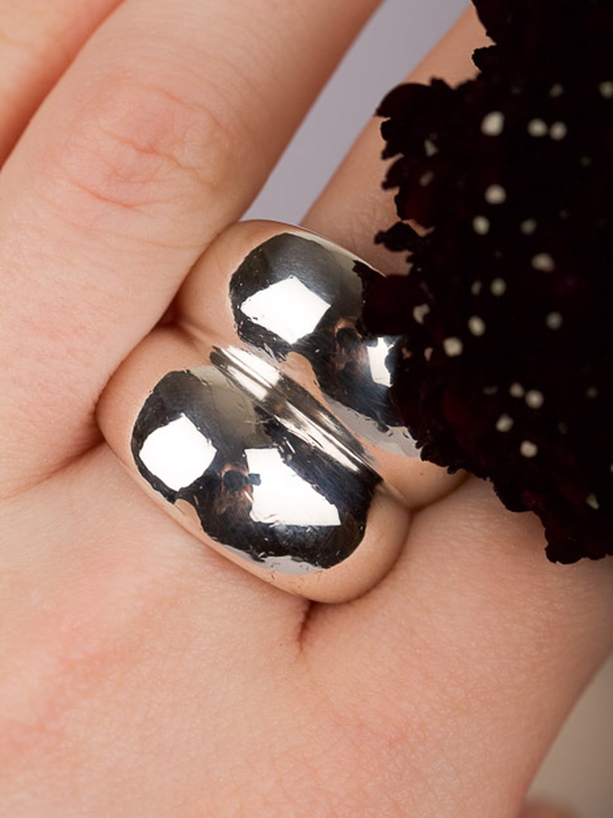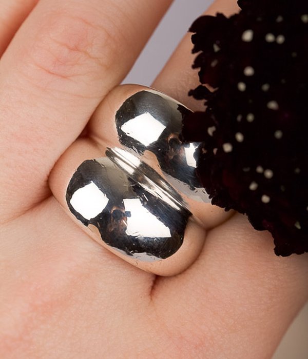 Maffiga ringen 'Curve' från Georg Jensen. Tecken på användning syns i form repor, mestadels undertill på ringen.
