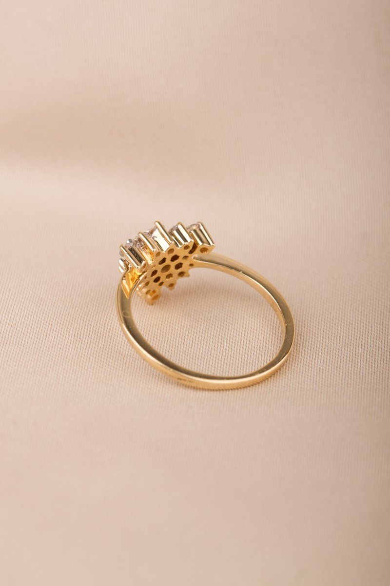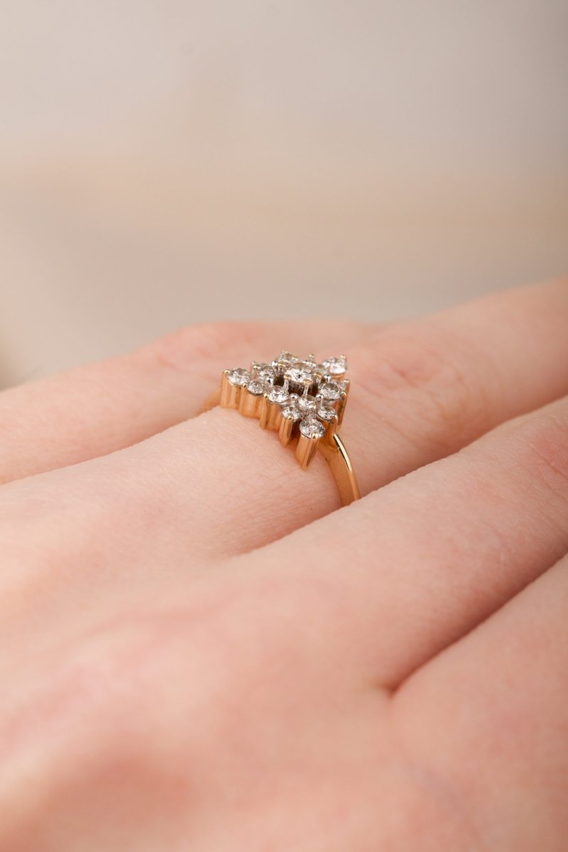 Vacker gnistarande guldring med både syntetiska (laboratorie) och naturliga diamanter.