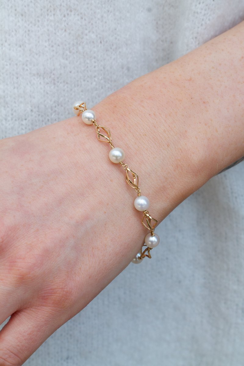 18K vitguld, åtta st odlade pärlor á ca. 6 mm