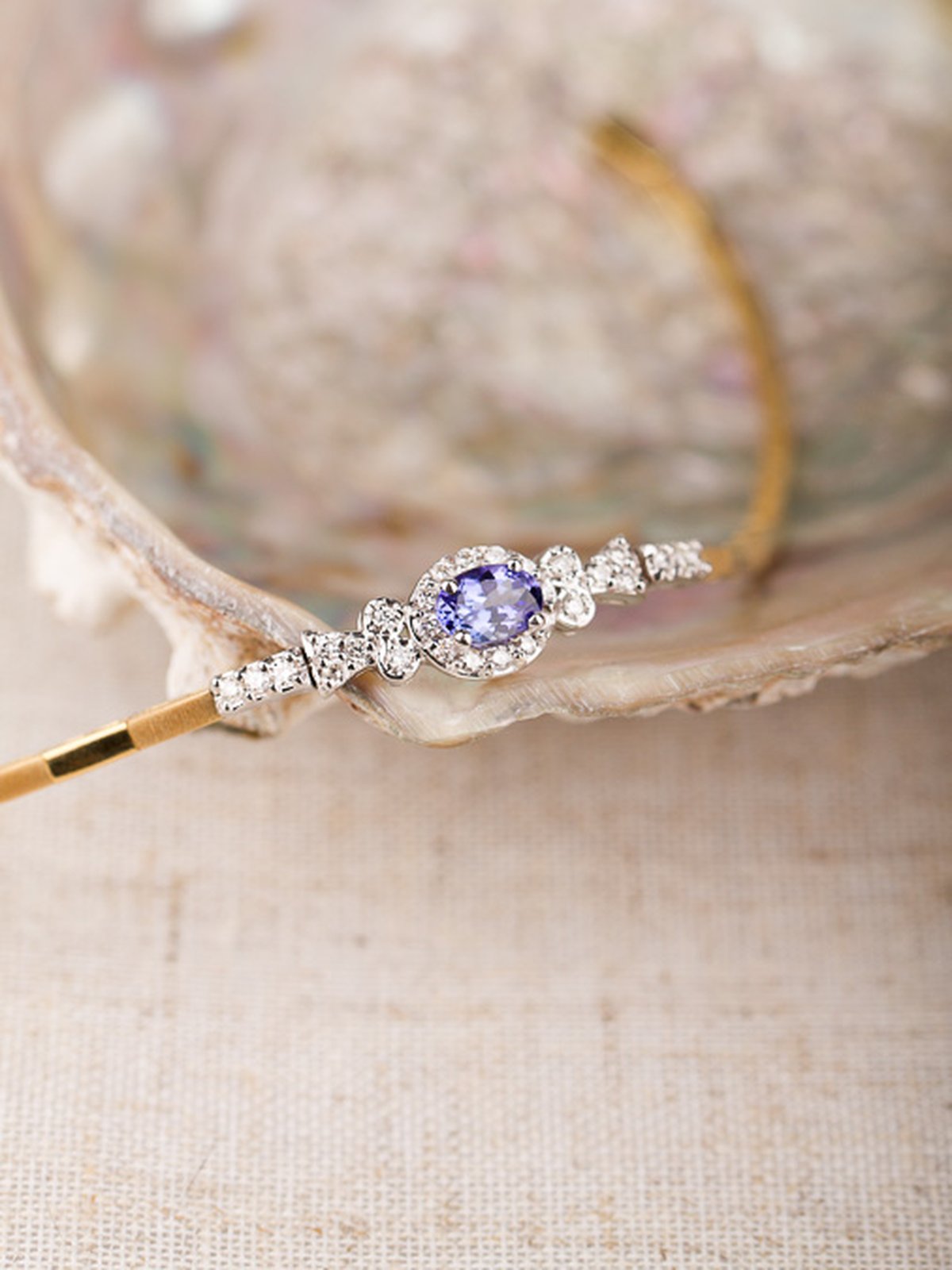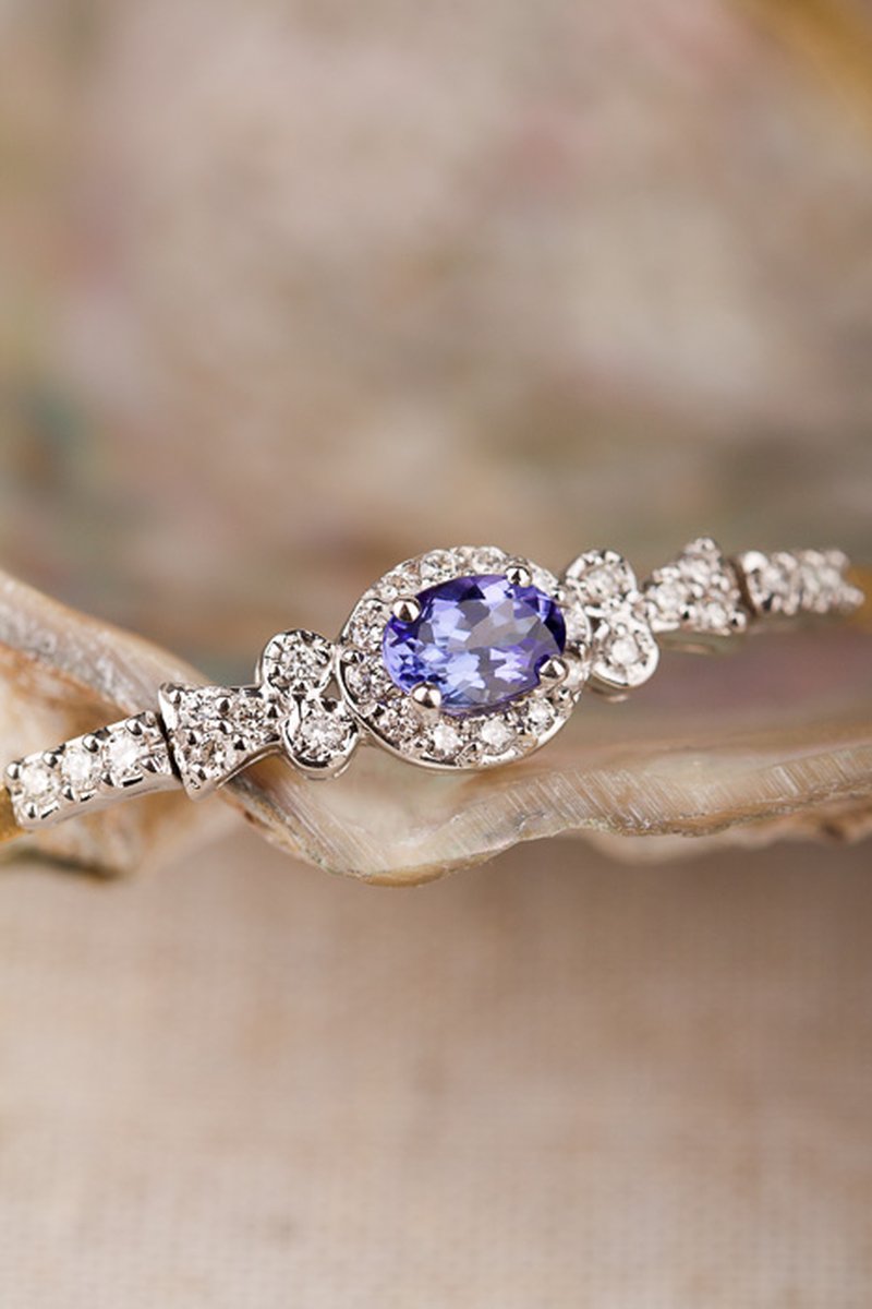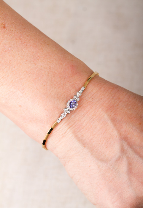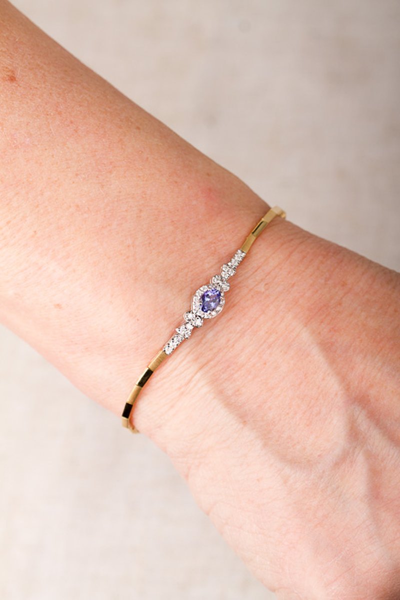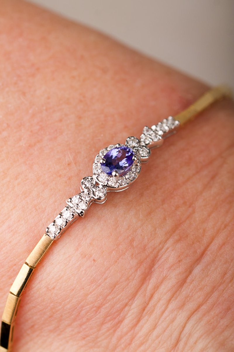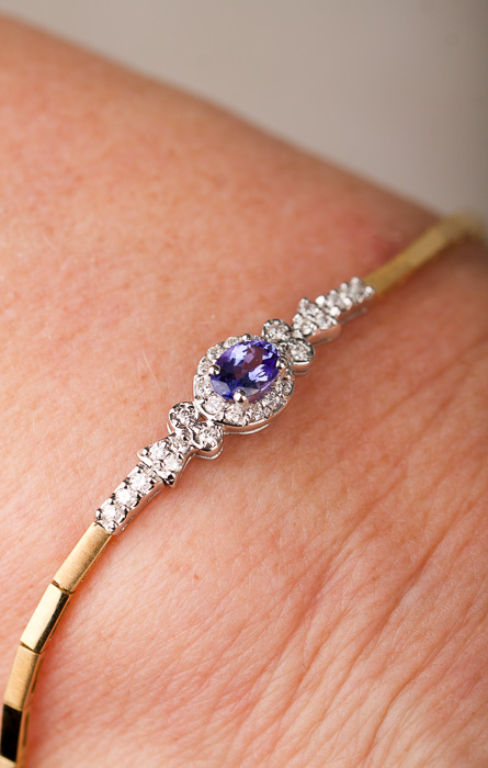 18K guld, Tanzanit 6,2 x 4,2 mm (0,56 ct), 28 st briljantslipade diamanter tot. 0,33 ct