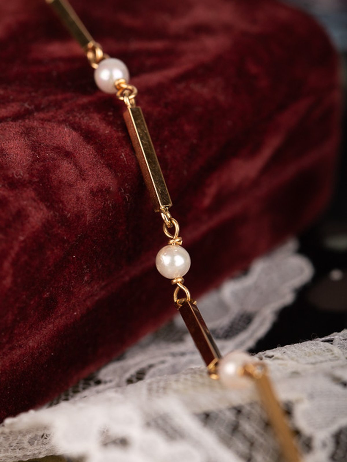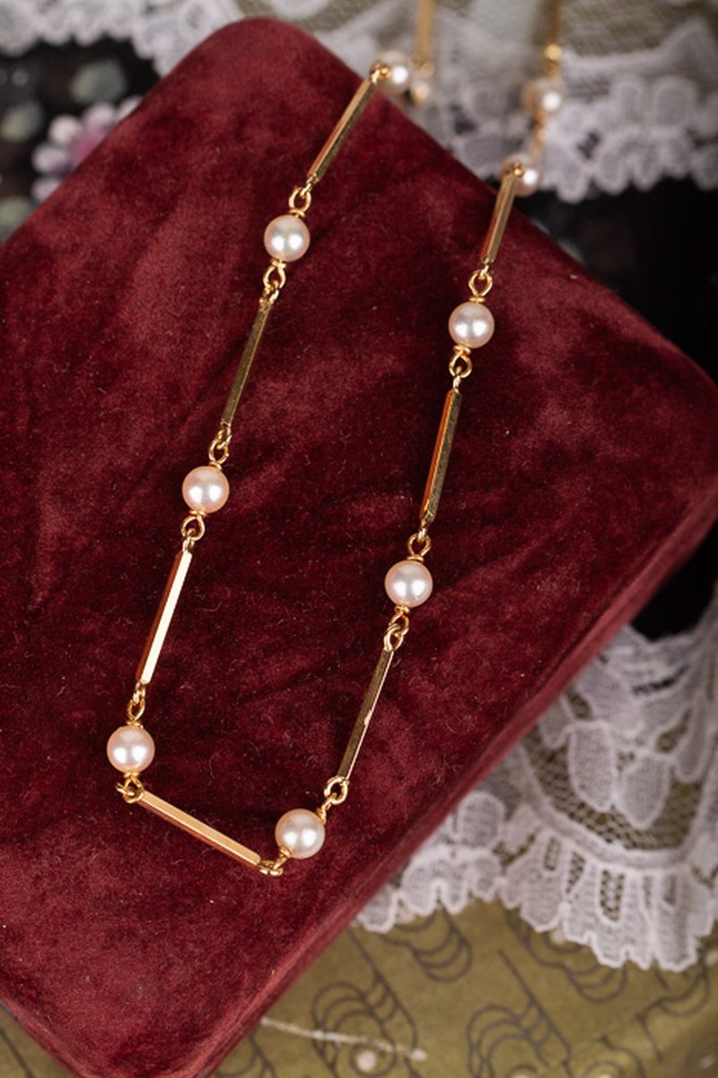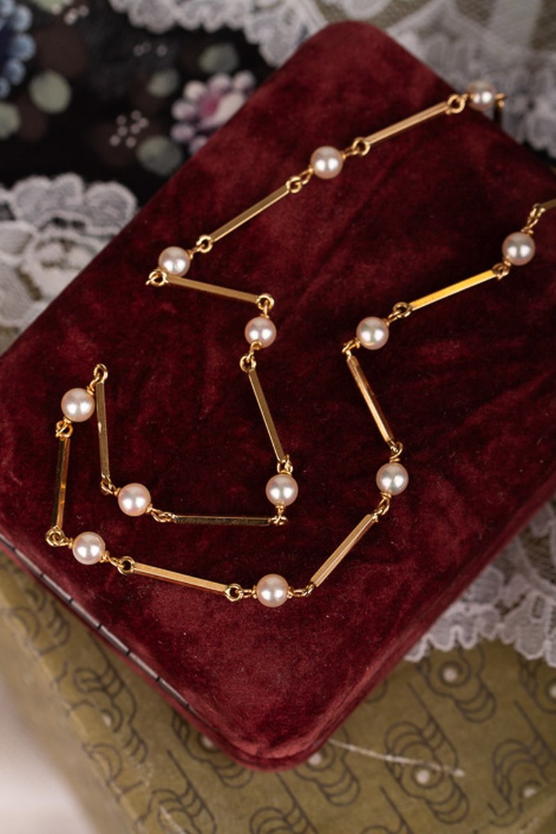 Pärlcollier förvaras bäst liggandes på en mjuk yta, dock inte av bomull. Detta torkar ur pärlorna.