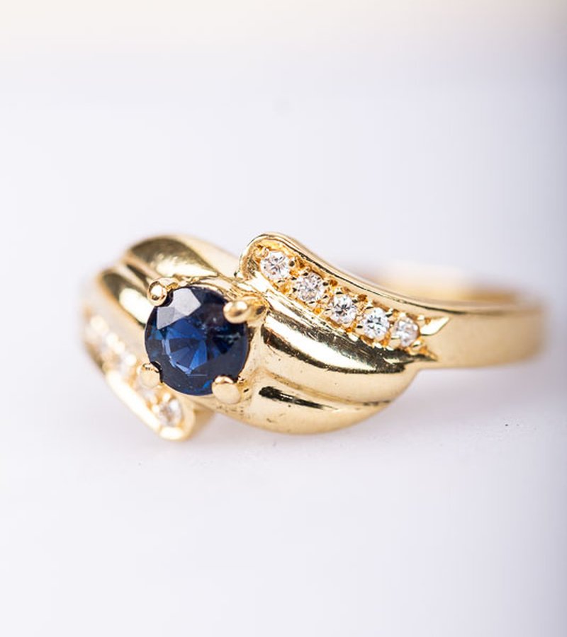 18k, safir och vita oäkta stenar