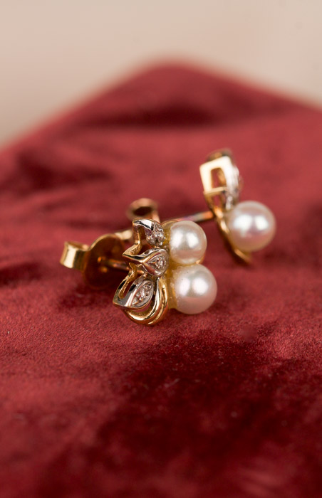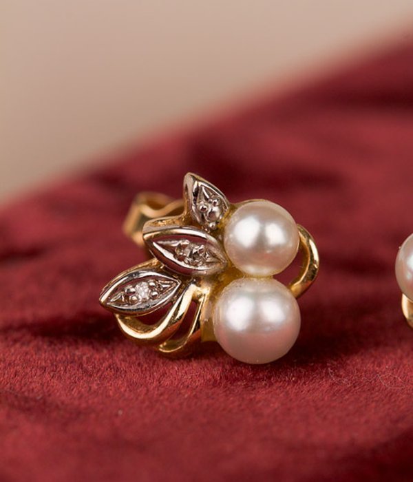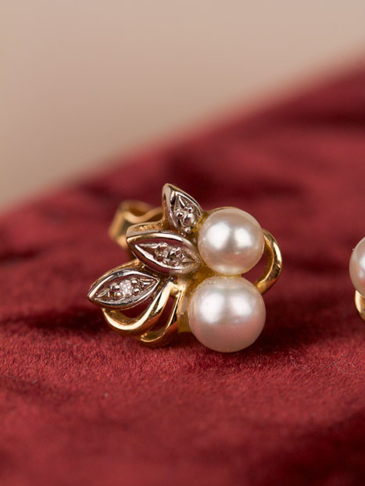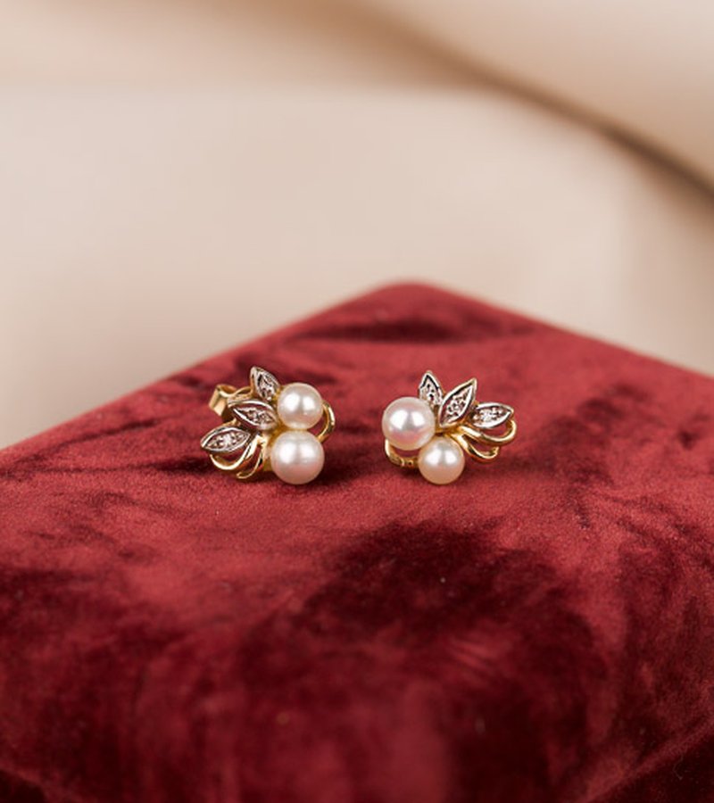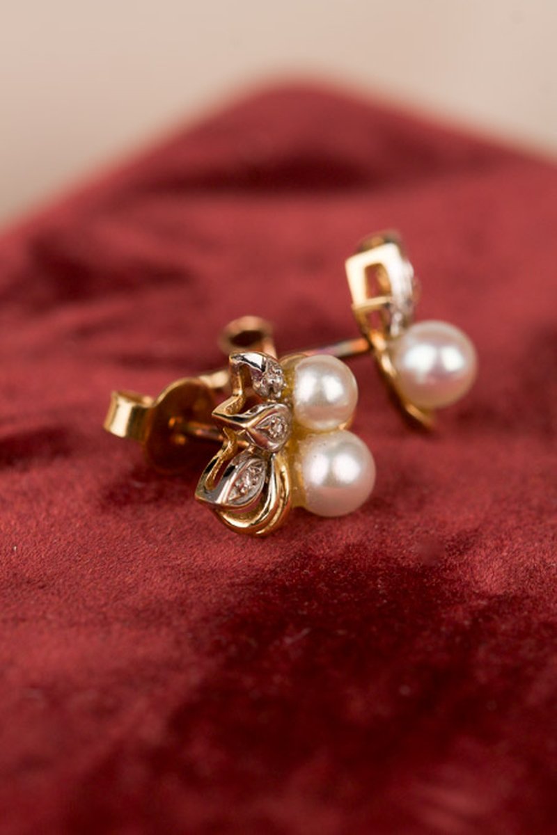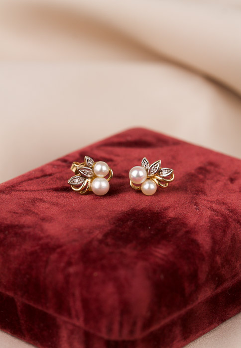 18K guld, odlade pärlor och diamanter 2 x 0,005 ct