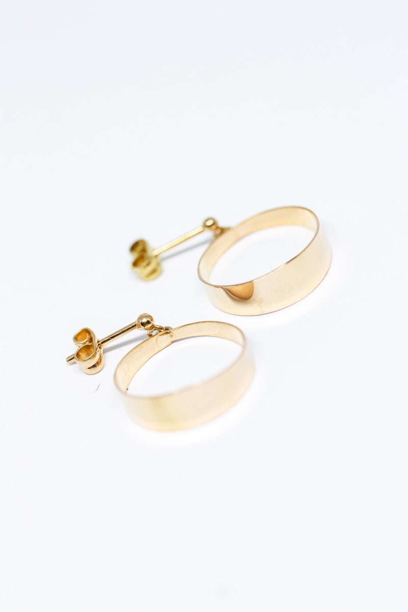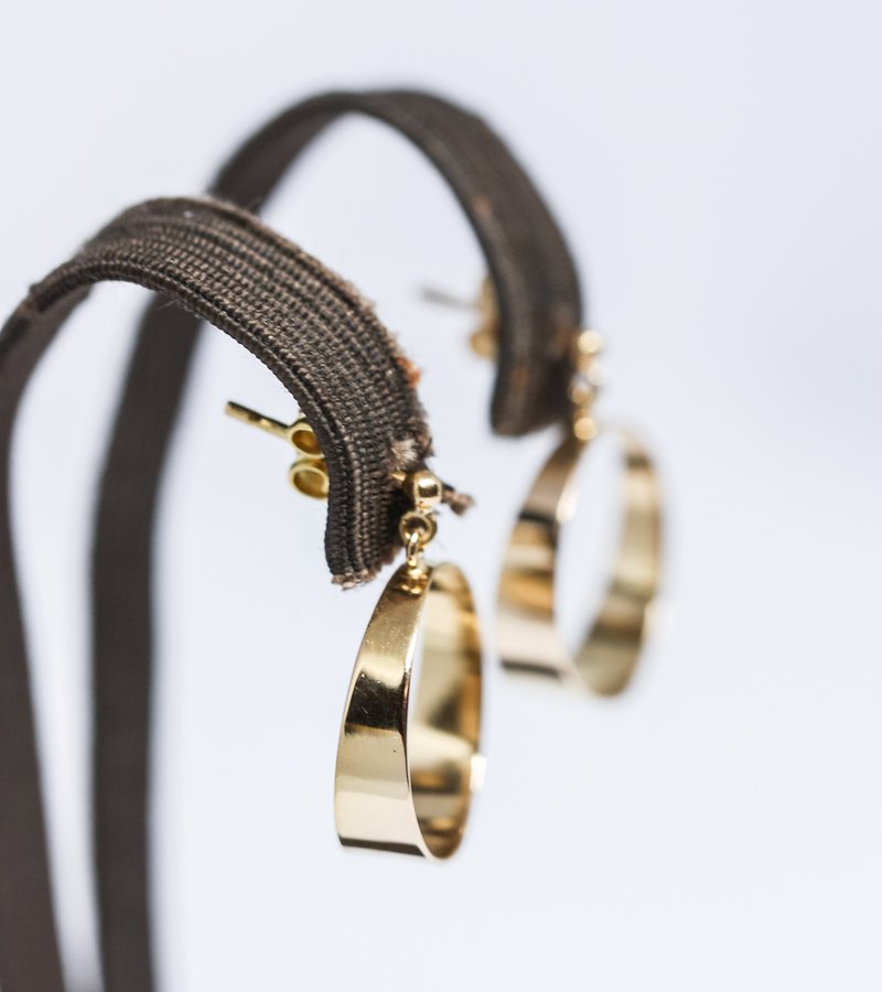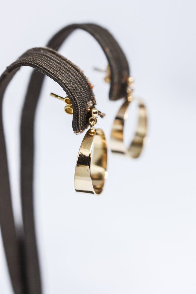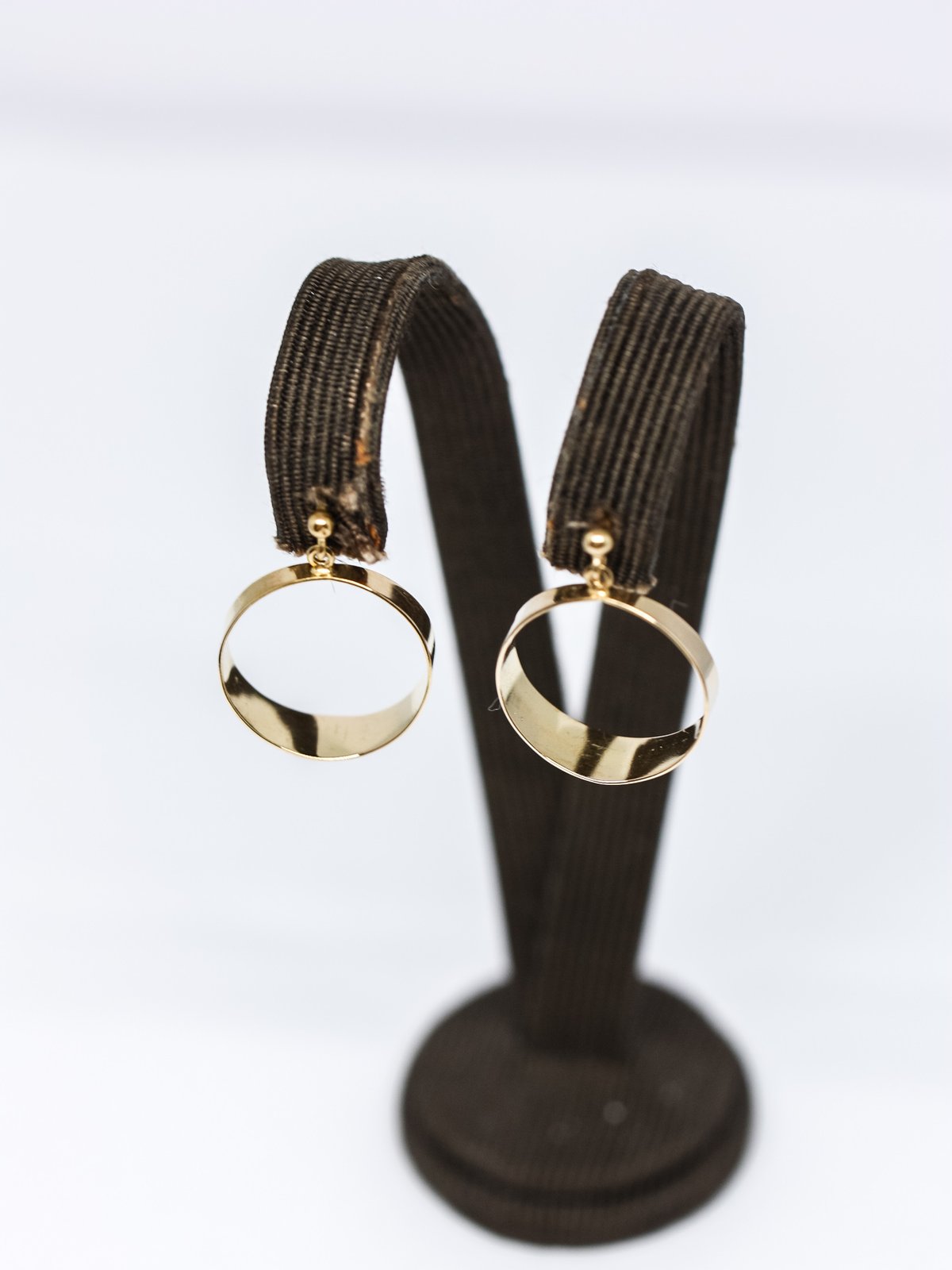 Vackra guldörhängen med löst hägnade ringar som dinglar vackert vid rörelse. Köp till LOX säkra bakstycken för att försäkra dig om att dina guldörhängen inte kommer bort.