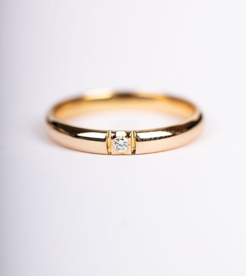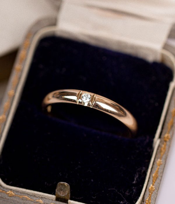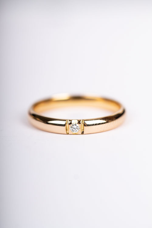 Vintage diamantring med kupad skena och en 0,03ct briljantslipad diamant. Tillverkad av Guldbolaget i Bergkvara.