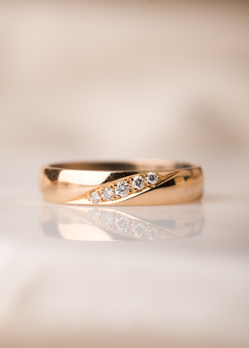 18K guld, 1 x 0,03, 2 x 0,02 och 2 x 0,015 ct diamanter