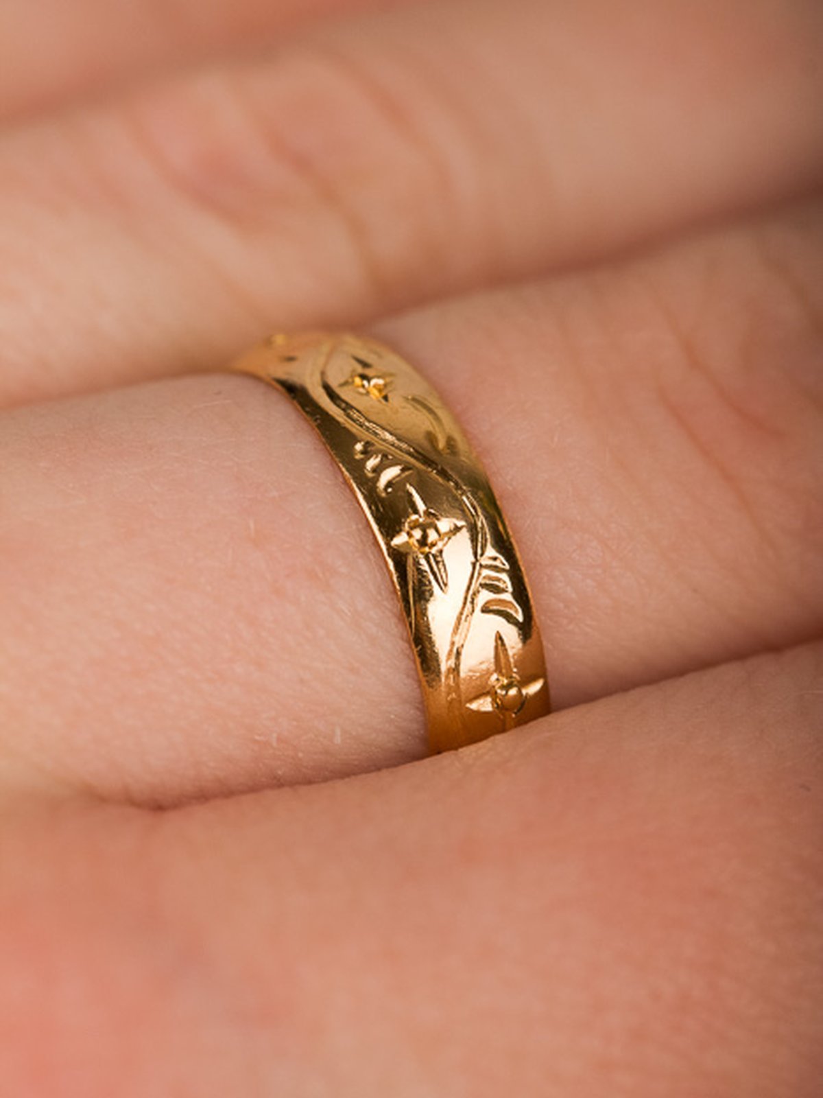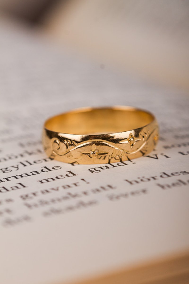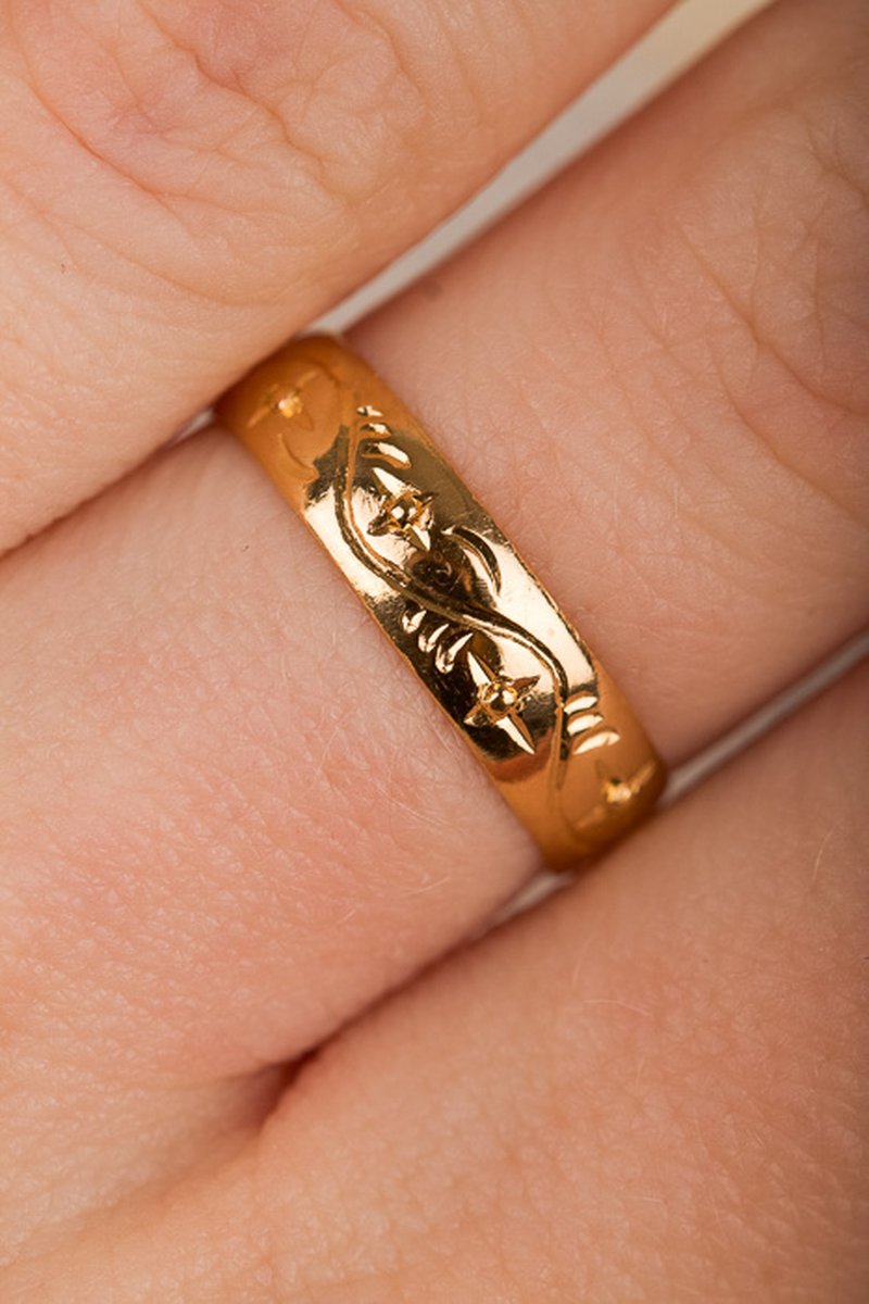 118 år gammal ring från Umeå i 23K guld, går bra att vidga till något större storlek vid behov.