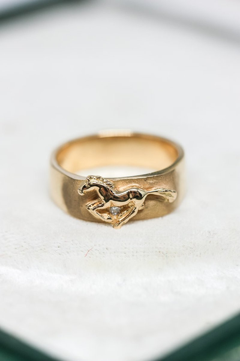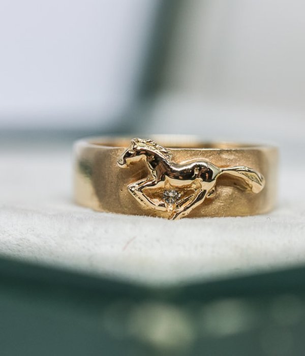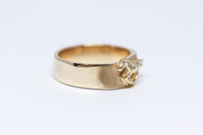Handtillverkad guldring av våran egna fantastiska guldsmed Eleonor. Denna ring tillverkades år 2000 som en kundbeställning och har nu hittat tillbaka till oss igen 22 år senare. Ringen är helt massiv och mycket bekväm på fingret då den har en lätt rundad insida.
