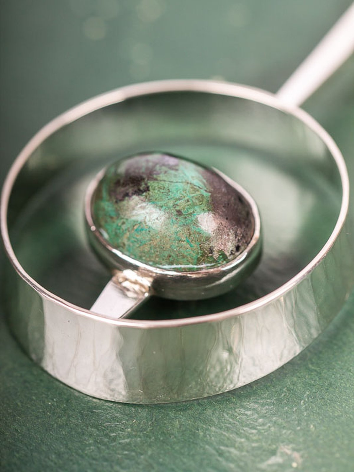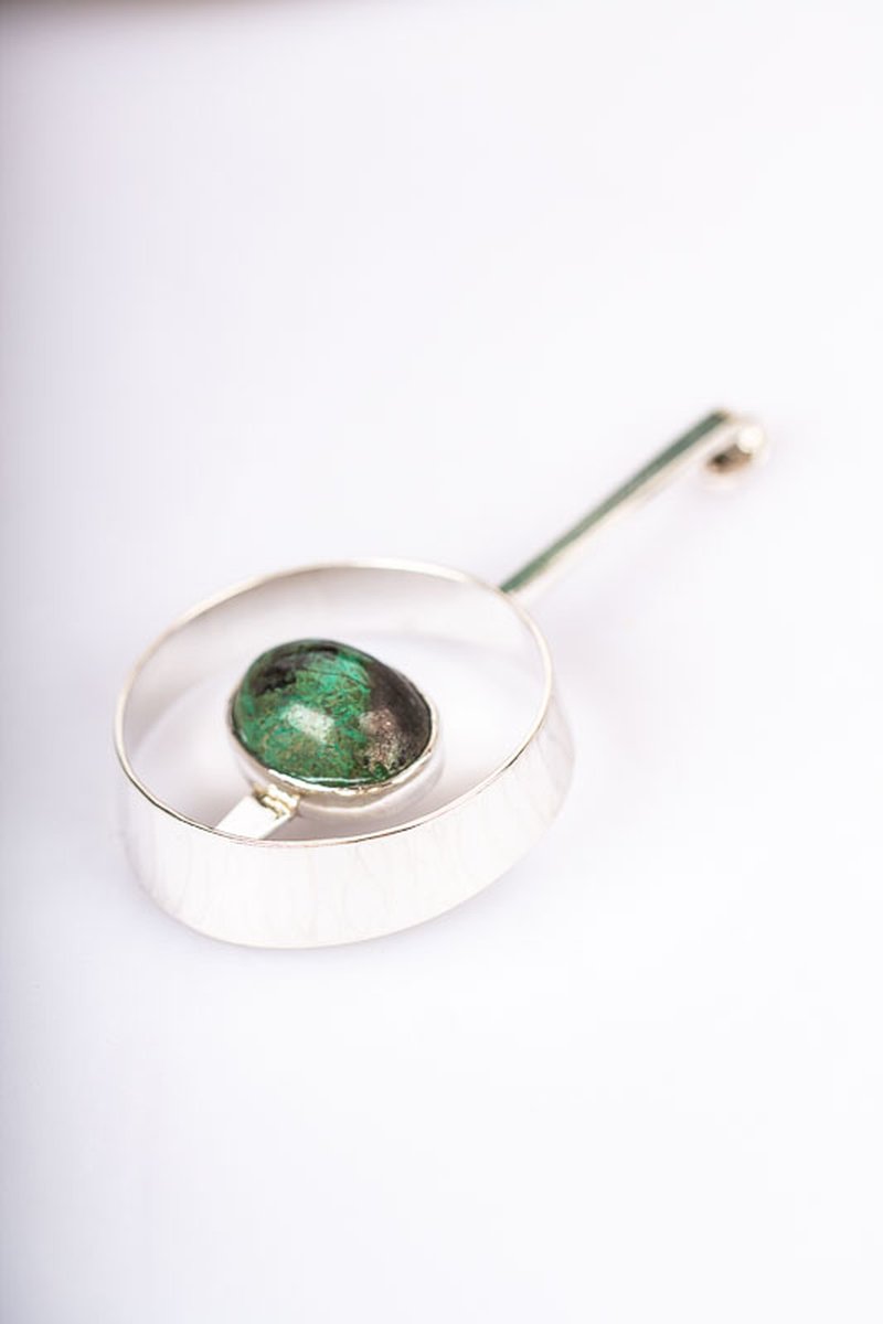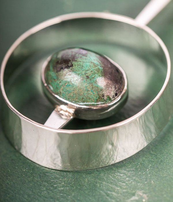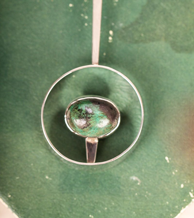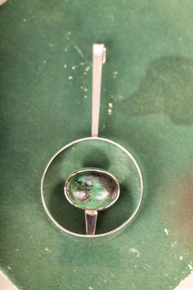 Hamrat silver i detta vintage-hänge med en härligt grön sten.