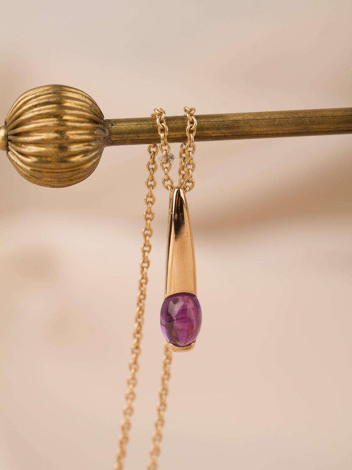 18K guld, oval cabuchonslipad ametist 5 x 6,5 mm