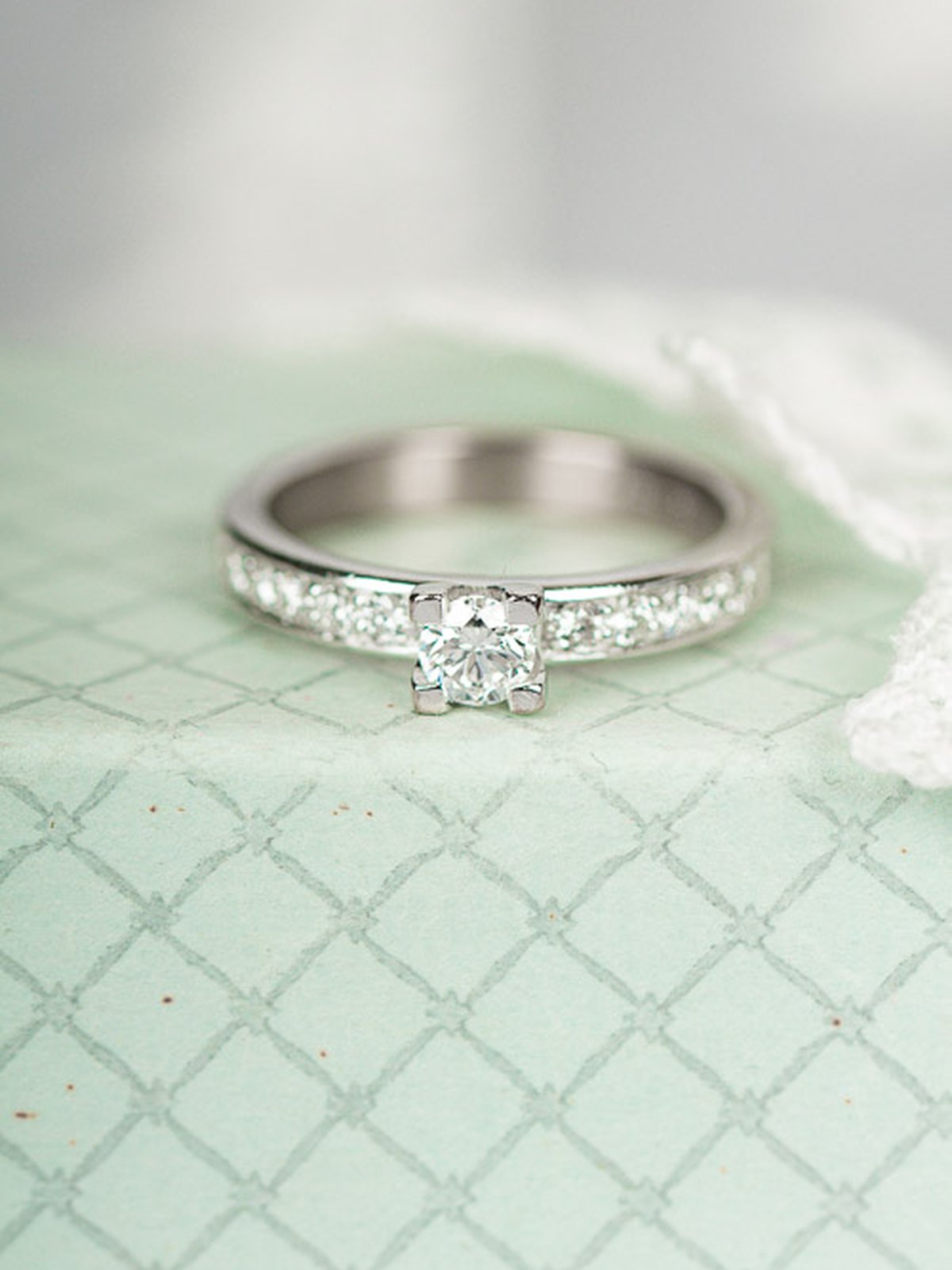 Omtyckta modellen 'Himla' från Schalins med en mittsten på 0,25ct och 10st sidostenar om 0,02ct. Fantastiskt alternativ som vigsel- eller förlovningsring. Går att gravera - svår att storleksändra.