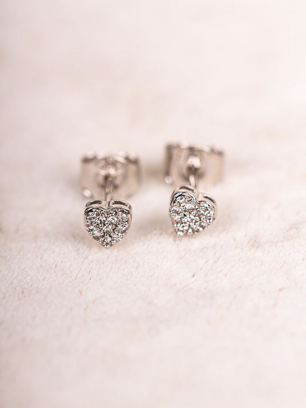 Söta hjärtörhängen i vitguld med totalt 20st små diamanter. Köp till LOX säkra bakstycken för att undvika att örhängena kommer bort.