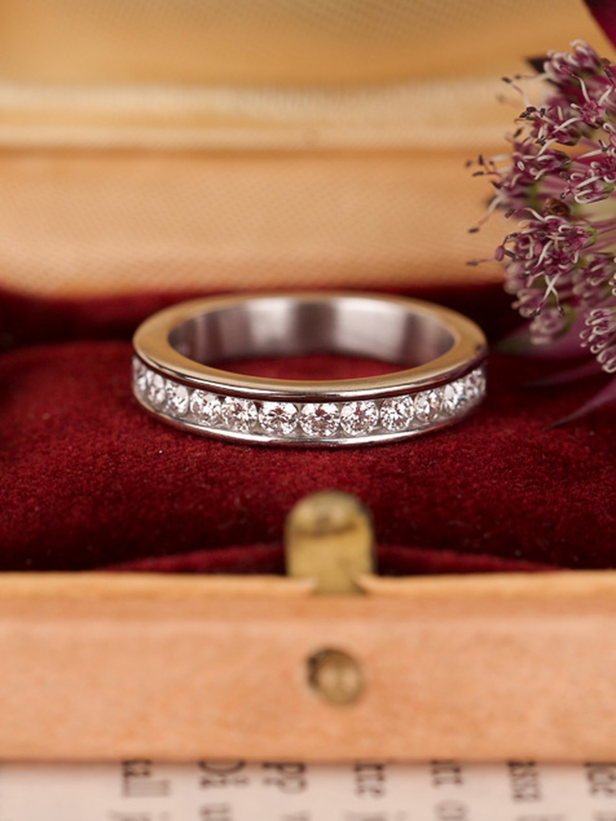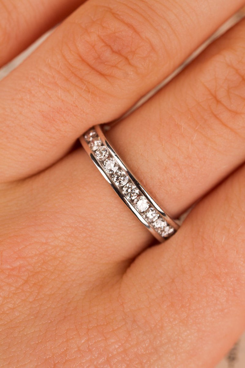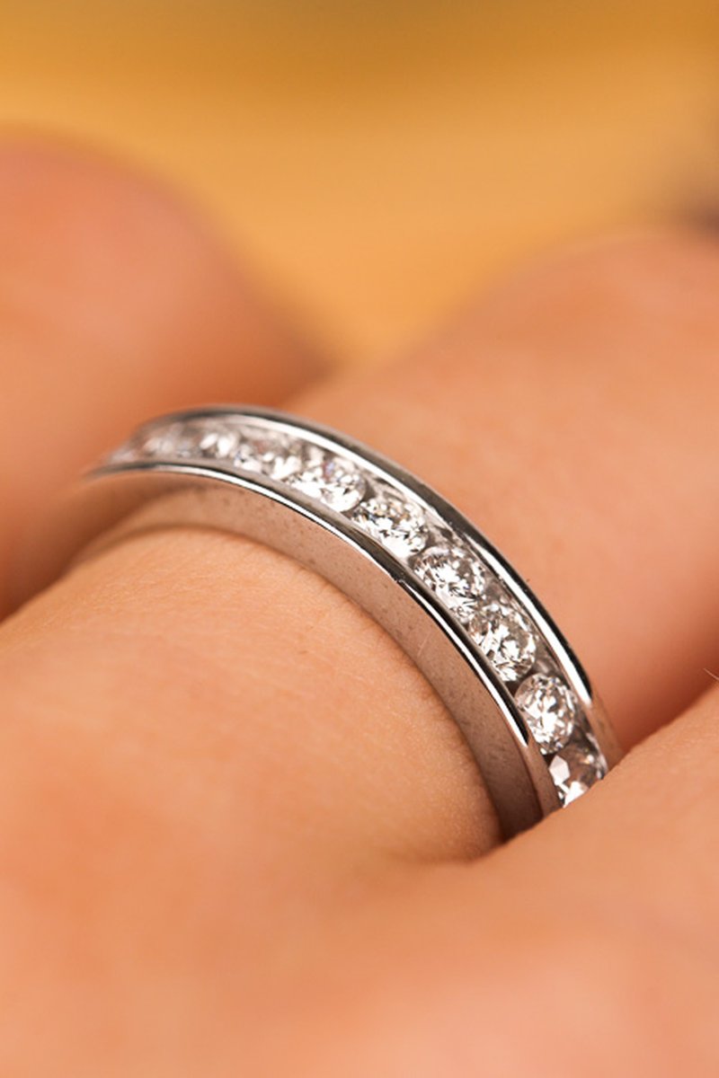 Maffig alliansring i vitguld med gnistrande briljanter.