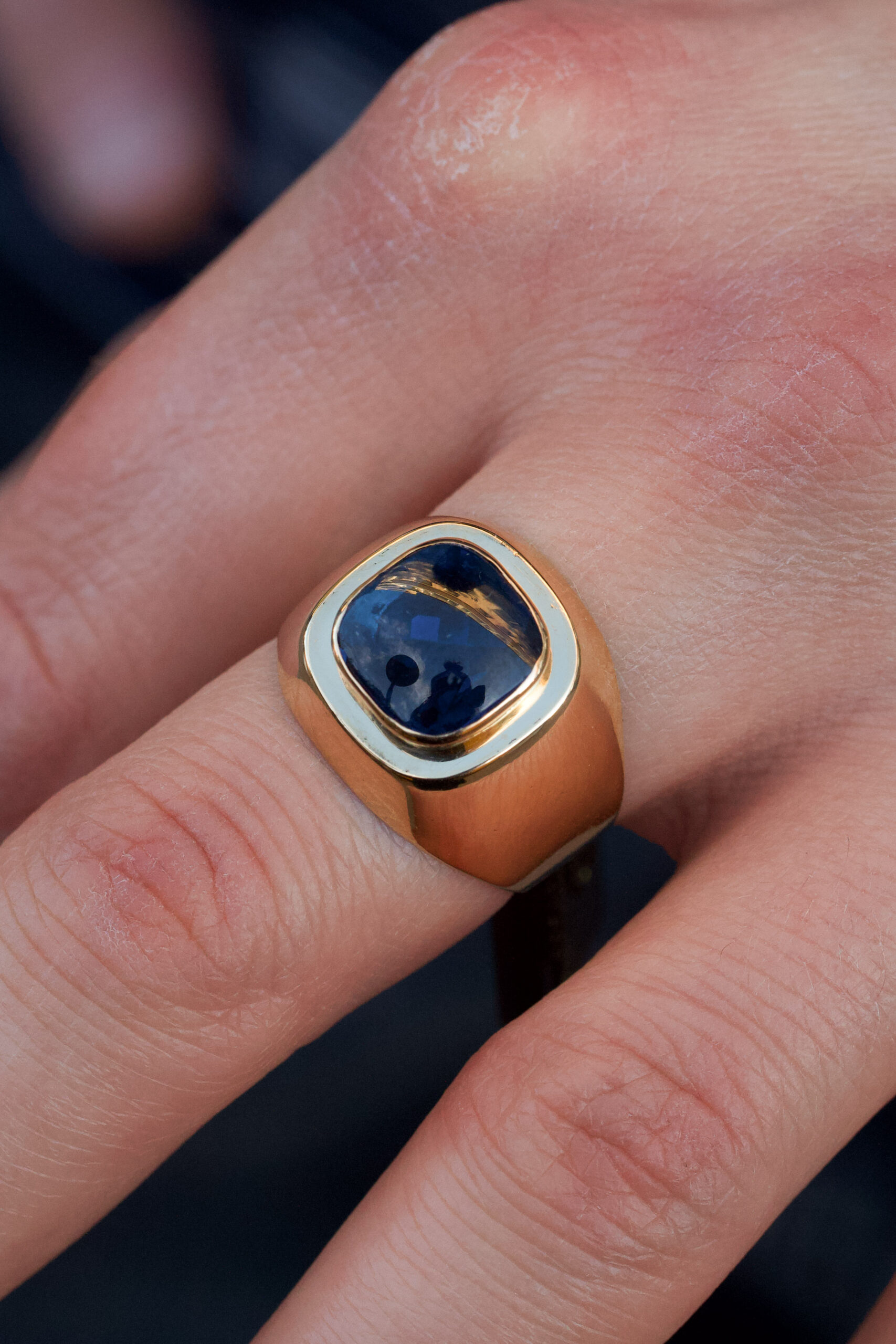18K guld, blå imitationssten