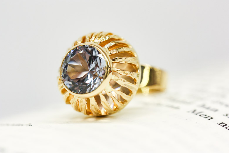 Unik ring med ljusblå sten, tillverkad på 70-talet i Köping.