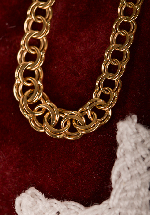 Pärlcollier förvaras bäst liggandes på en mjuk yta, dock inte av bomull. Detta torkar ur pärlorna.