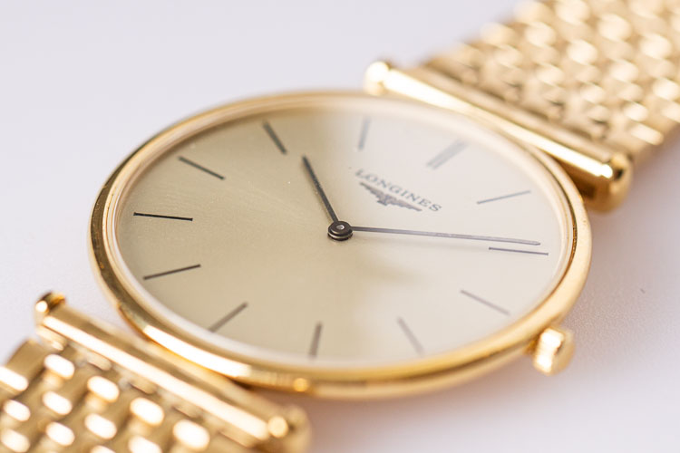 Pre-Owned klocka från Longines i mycket gott skick. Modellen heter 'La Grande Classique' och har en otrolig boett på endast 4,3mm. Den mycket slimmade boetten gör klockan både elegant och bekväm att bära.