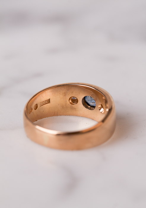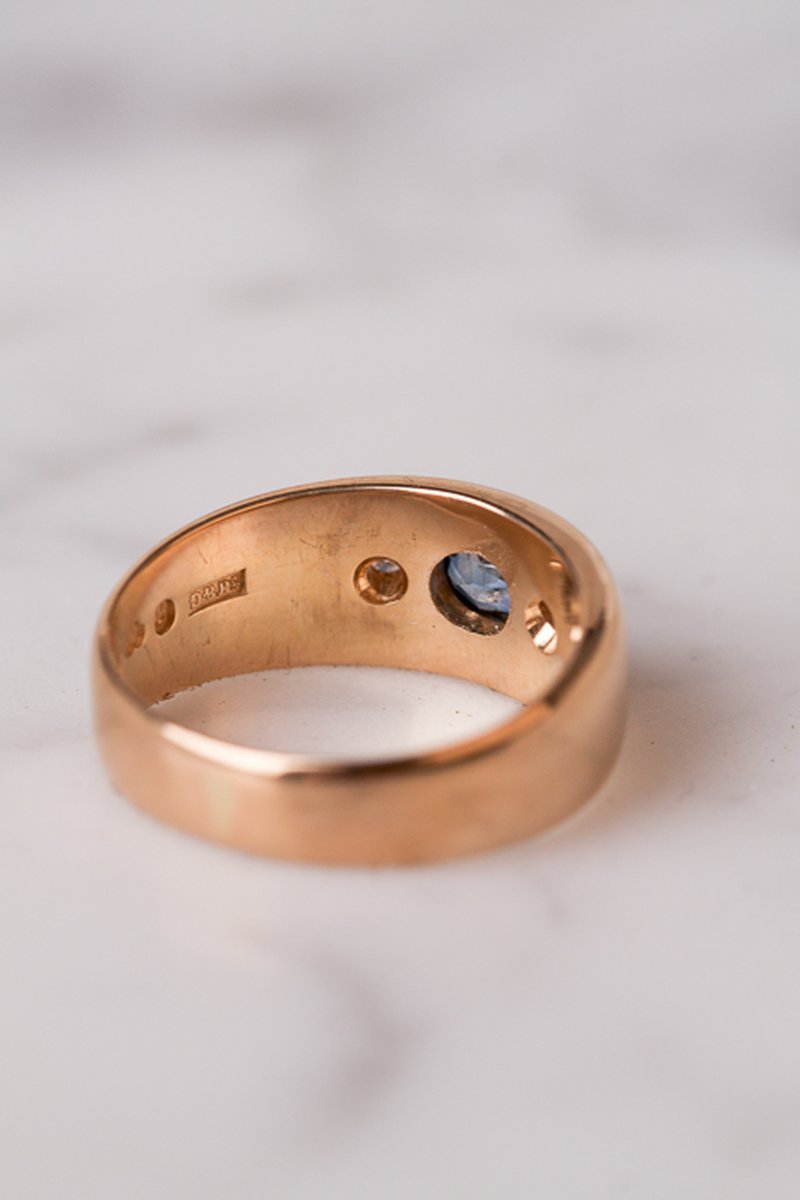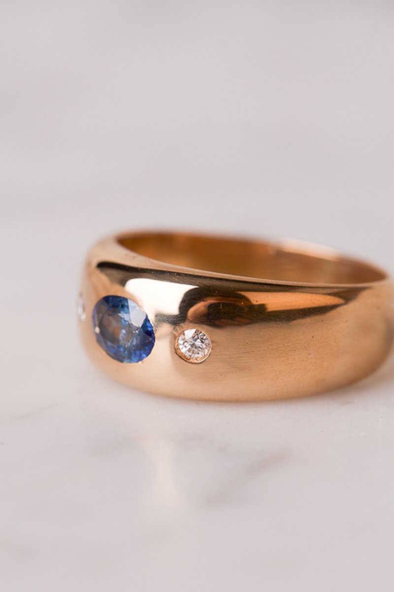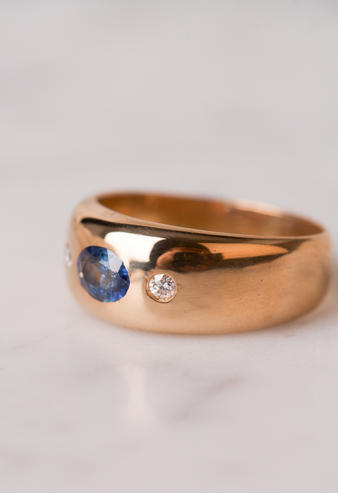 18k guld, oval safir 6,6 x 4,2 mm, briljantslipade diamanter 2 x 0,04 ct